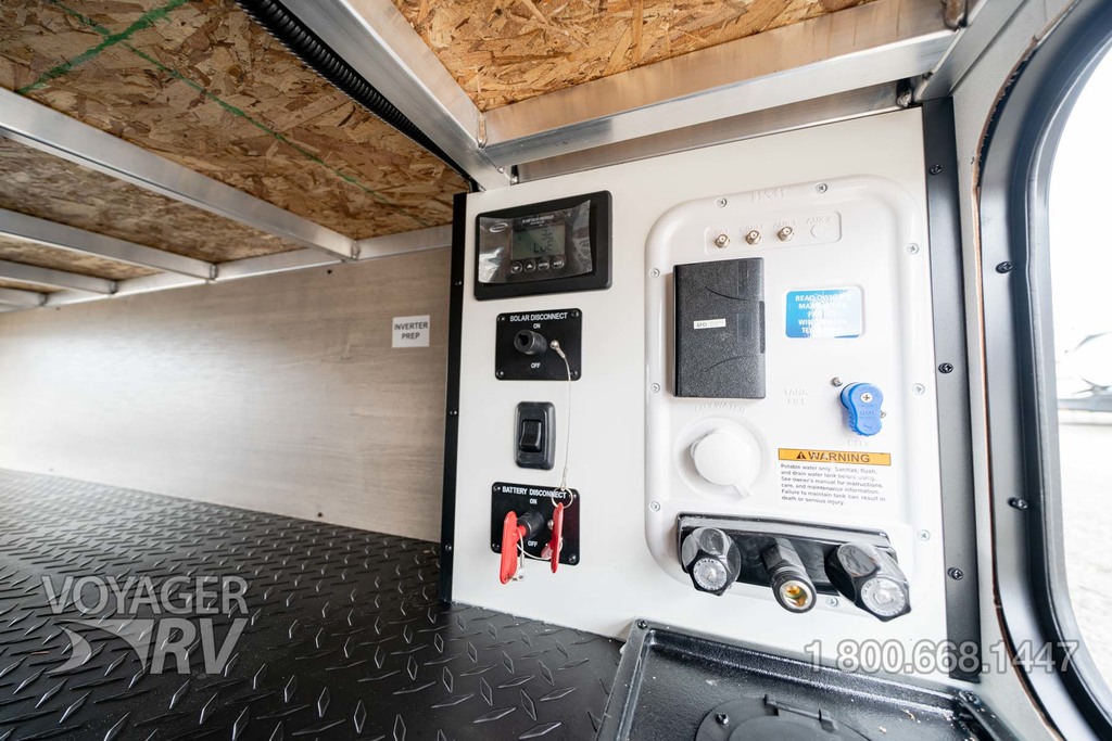 - Solar Package: 200W Roof Mounted Solar Panel, Roof Mounted Quick Connect Plugs, 30AMP Charge Controller, Solar Disconnect Switch, Battery Disconnect Switch, 12V 10CU FT Refrigerator.