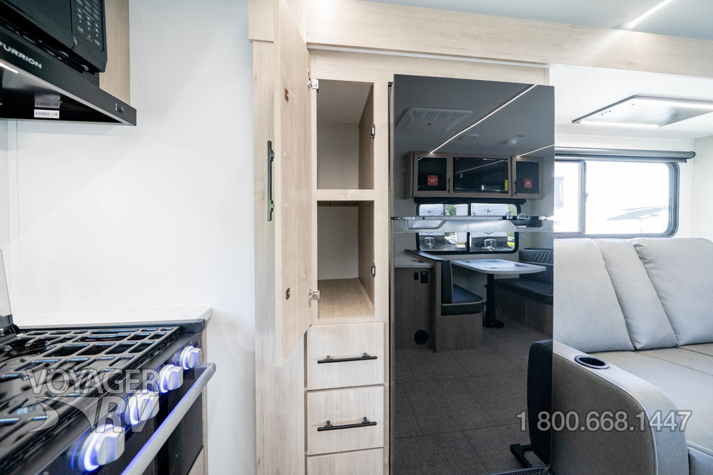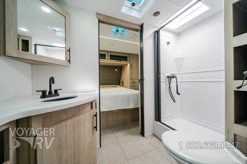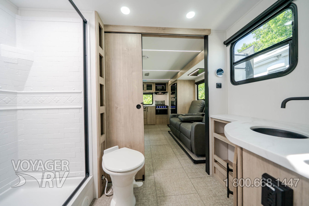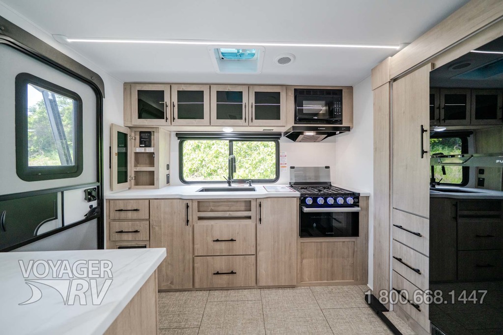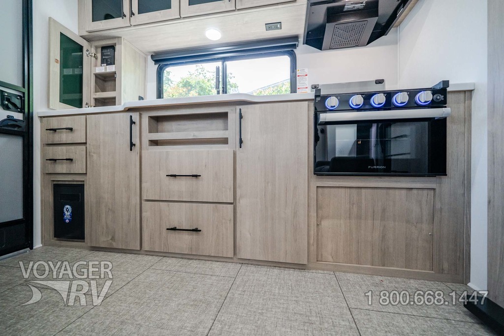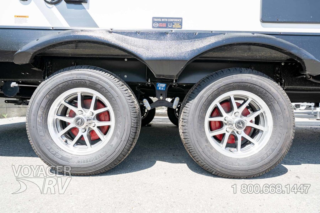 - Peace of Mind Package: Aluminum Entry Steps, Walk on Roof, Universal Docking Station, On-Demand Tankless Water Heater, Black Tank Flush, Aluminum Rims, Spare Tire & Carrier, Front Rock Guard, 6’ Coiled Break Away Cable, Accessory Hitch, Sewer Hose Carrier, Tuff-Ply Pass Thru Flooring, Dual LP Tank Monitors, Hot/Cold Exterior Spray Port, Oversized Holding Tanks, Rear Ladder, LP Quick Connect, Key-a-Like Baggage and Entry Doors, Entry Door Privacy Shade, 7-Way Plug Chassis Bracket, Master Bed Reading Lights, Strutted Bed Base, Retractable Shower Door, Soft Close Toilet Lids, Undermounted Kitchen & Lav Sinks, Residential Pulldown Spray Faucet, Residential Cabinetry and Hardware, Soft Close Hidden Hinges, Magnetic Cabinet Door & Drawer Latches, Premium Window Treatments, Intergraded Soap Dispenser, Rollup Kitchen Sink Cover, 3-Burner Range w/Low Profile Power Vent, Pots and Pans Drawer, Carpetless Floors, Paper Towel Holder, Dedicated Trash Compartment, Enhanced Plumbing System.