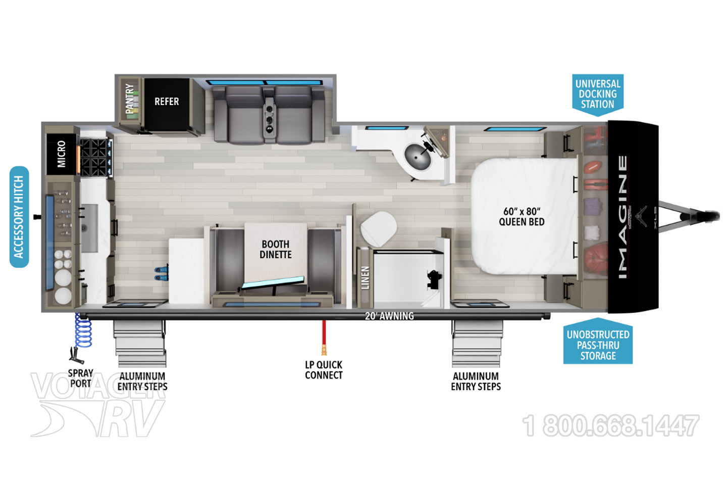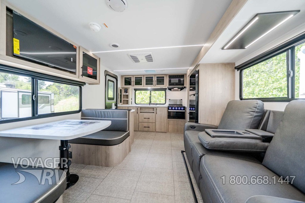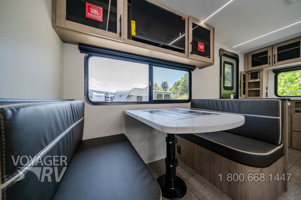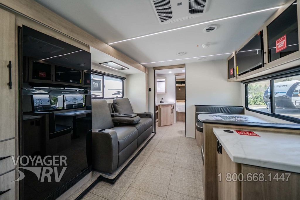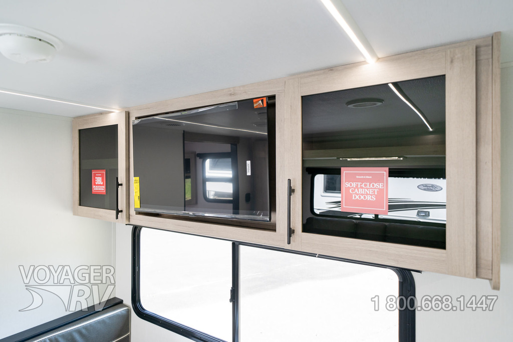 - Ultimate Power Package: Adjustable Power Awning w/LED Lights, LED Interior Lighting w/Dimming, 30 AMP Service, Hi Definition Smart LED TV, Detachable Power Cord, Ducted Main AC, Motion Sensor LED Night Light, Power Tongue Jack, Exterior Cable Hookup, Compass Connect, Tire Linc TPMS Prep, JBL Bluetooth Audio System, Inverter Prep, Backup Camera Prep, Pass-Thru Motion LED Light.