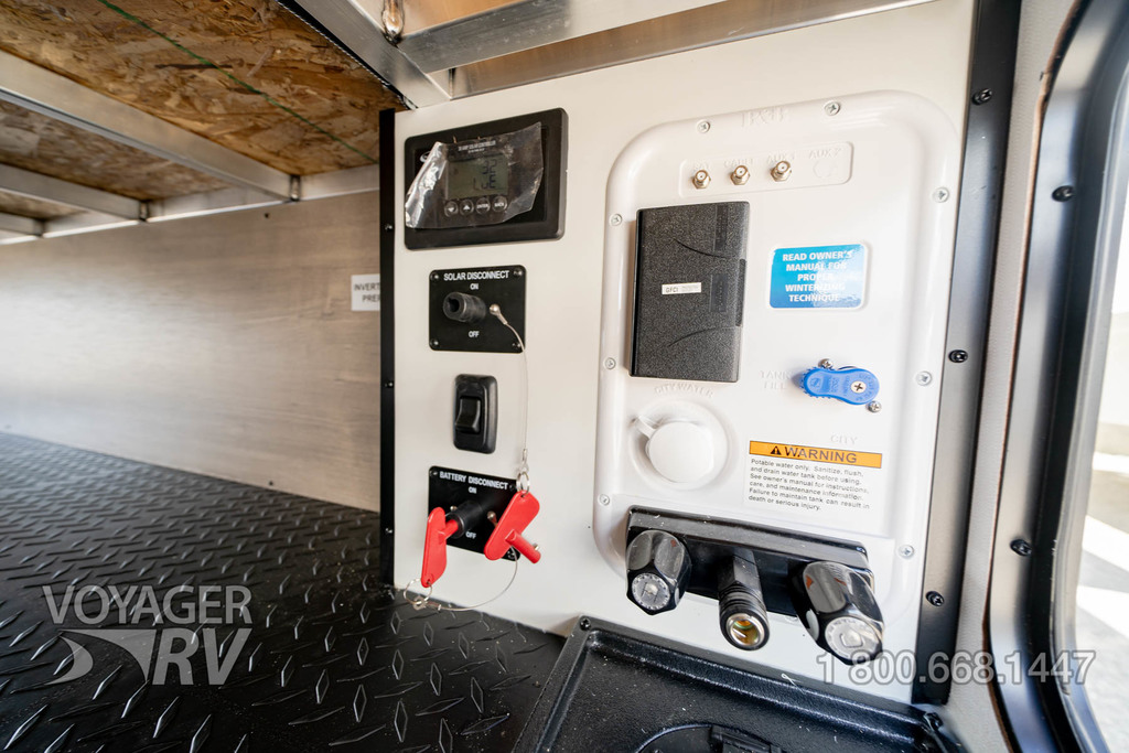 - Solar Package: 200W Roof Mounted Solar Panel, Roof Mounted Quick Connect Plugs, 30AMP Charge Controller, Solar Disconnect Switch, Battery Disconnect Switch, 12V 10CU FT Refrigerator.