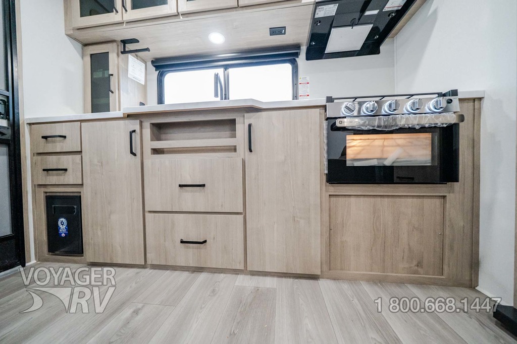 - Peace of Mind Package: Aluminum Entry Steps, Walk on Roof, Universal Docking Station, On-Demand Tankless Water Heater, Black Tank Flush, Aluminum Rims, Spare Tire & Carrier, Front Rock Guard, 6’ Coiled Break Away Cable, Accessory Hitch, Sewer Hose Carrier, Tuff-Ply Pass Thru Flooring, Dual LP Tank Monitors, Hot/Cold Exterior Spray Port, Oversized Holding Tanks, Rear Ladder, LP Quick Connect, Key-a-Like Baggage and Entry Doors, Entry Door Privacy Shade, 7-Way Plug Chassis Bracket, Master Bed Reading Lights, Strutted Bed Base, Retractable Shower Door, Soft Close Toilet Lids, Undermounted Kitchen & Lav Sinks, Residential Pulldown Spray Faucet, Residential Cabinetry and Hardware, Soft Close Hidden Hinges, Magnetic Cabinet Door & Drawer Latches, Premium Window Treatments, Intergraded Soap Dispenser, Rollup Kitchen Sink Cover, 3-Burner Range w/Low Profile Power Vent, Pots and Pans Drawer, Carpetless Floors, Paper Towel Holder, Dedicated Trash Compartment, Enhanced Plumbing System.