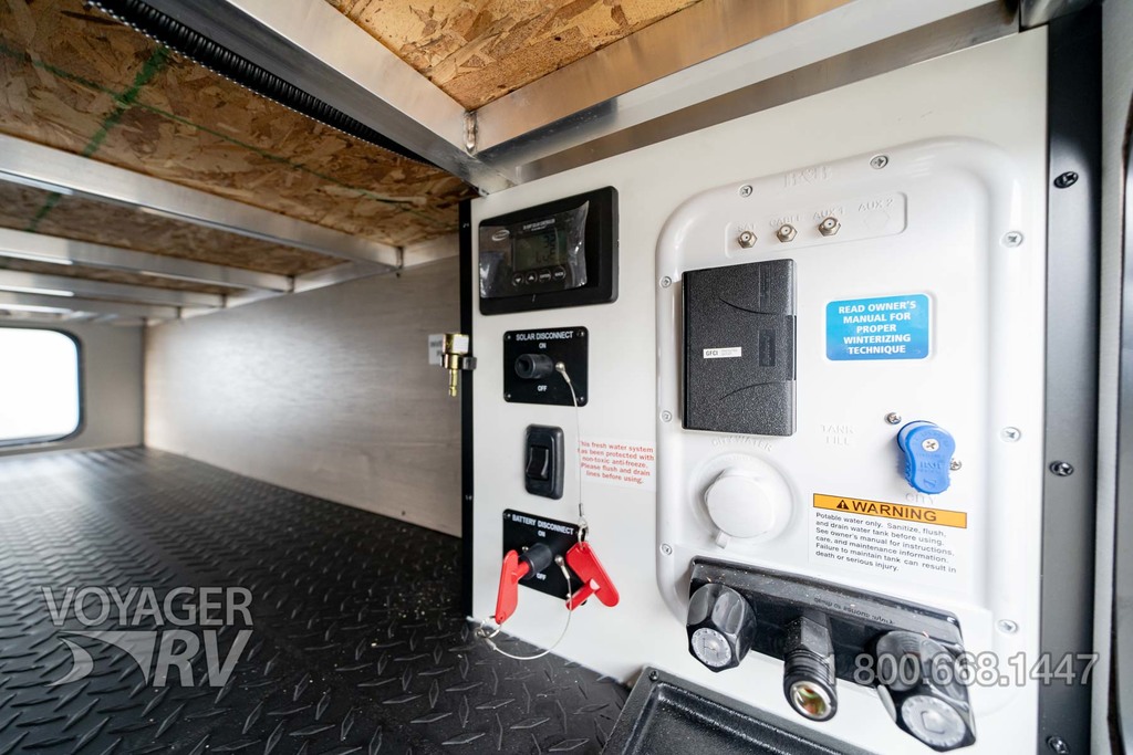 - Solar Package: 200W Roof Mounted Solar Panel, Roof Mounted Quick Connect Plugs, 30AMP Charge Controller, Solar Disconnect Switch, Battery Disconnect Switch, 12V 10CU FT Refrigerator.