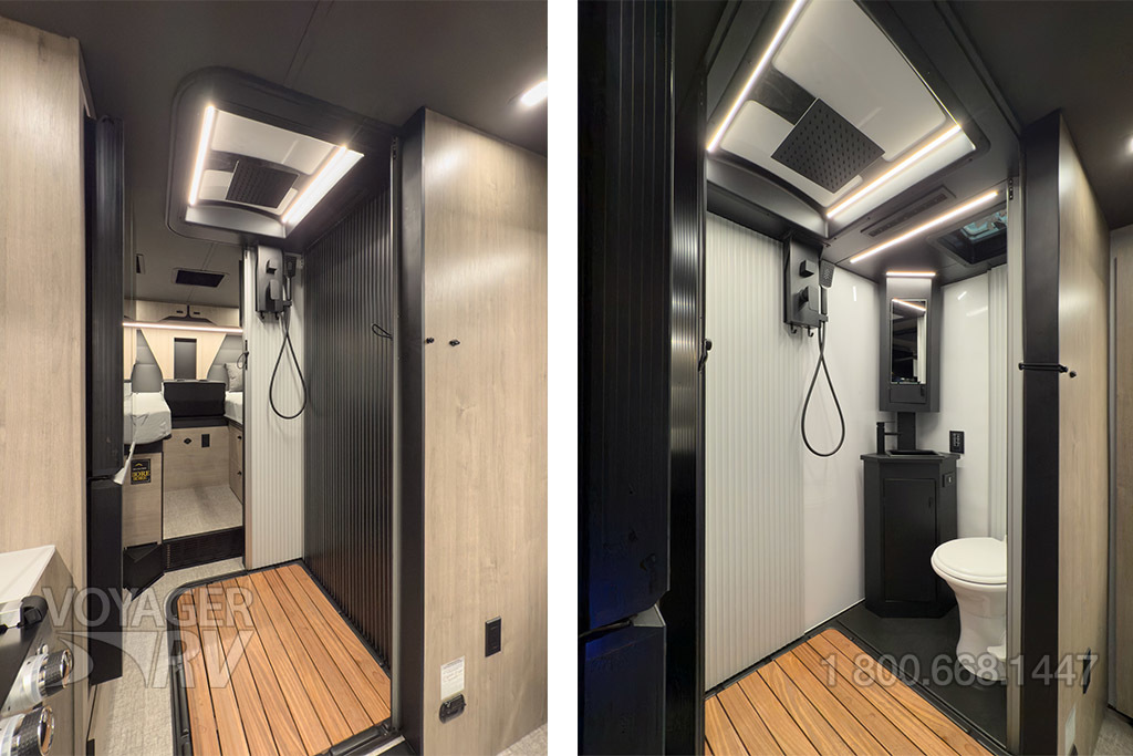 - Custom Shower Surround and Pan w/Linear Slot Drain, SeaDek Pad, Lighted Skylight-Shower Dome