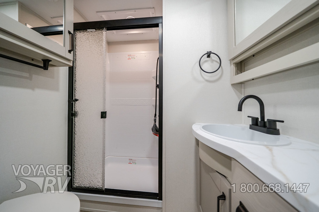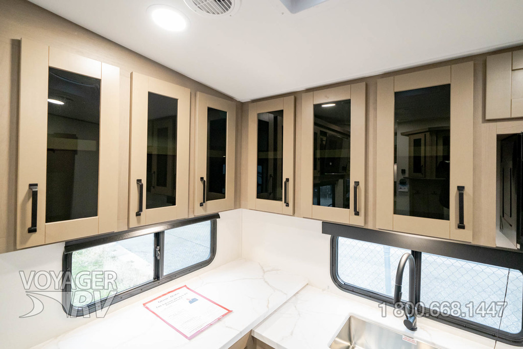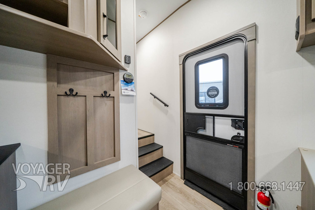 - Peace of Mind Package: Brass Plumbing Fixtures w/ Water Shutoffs at all Major Plumbing Sources, Hardwood Residential Cabinetry w/ Soft Close Hinges, Pull Out Trash Can Storage, Silverware Drawer, Pull Out Pet Dish, Hi-Rise Faucet w/ Pullout Hose, Stainless Steel Kitchen Sink w/ Roll-Up Sink Cover, Upgraded Furniture, Porcelain Toilet, Medicine Cabinet, True Queen Bed (60x80), Fully Painted Front Cap, Unobstructed Pass-Through Storage w/ Diamond Plate Flooring, MORryde “StebAbove” Entry Step, Extended Grab Handle, Screen Defender, Pet Leash Hitch, Lippert Thin Shade Prep, All-in-One Docking Station w/ EZ Winterization Valve, Lift Assist Front Cargo Door, Beltless Rolled Skirt Metal, LP Quick Connect, 6’ Coiled Break Away Cable, Aluminum Rims, Spare Tire w/ Undermount Carrier, 2” Receiver Hitch, 7-Way Plug Holder, Self-Adjusting Brakes, Banded TPMS, CounterAct Balance Beads, Reverse Lights, Exterior Mounted Ladder for Full Walk-On Roof Access.