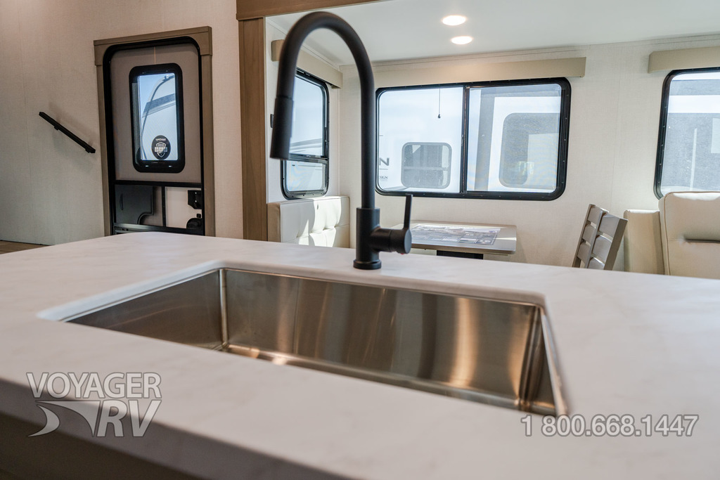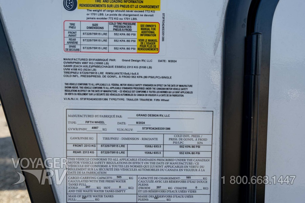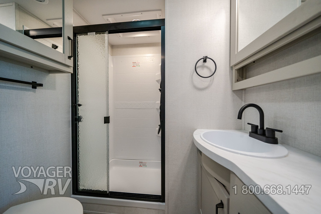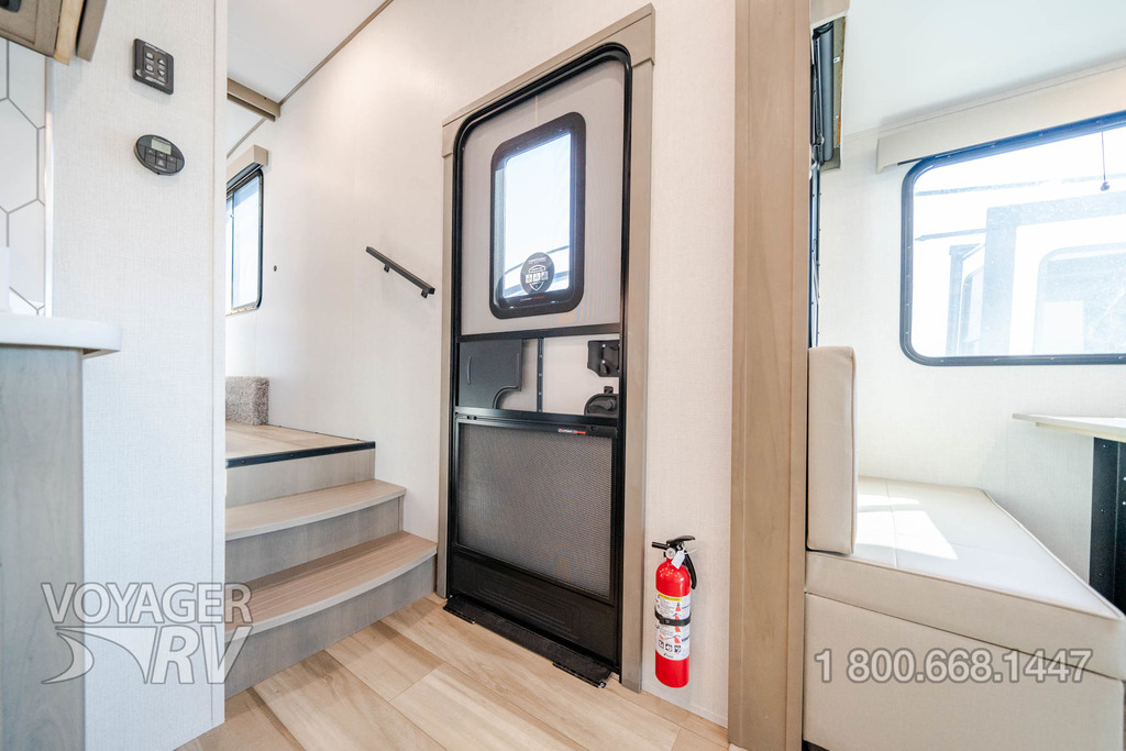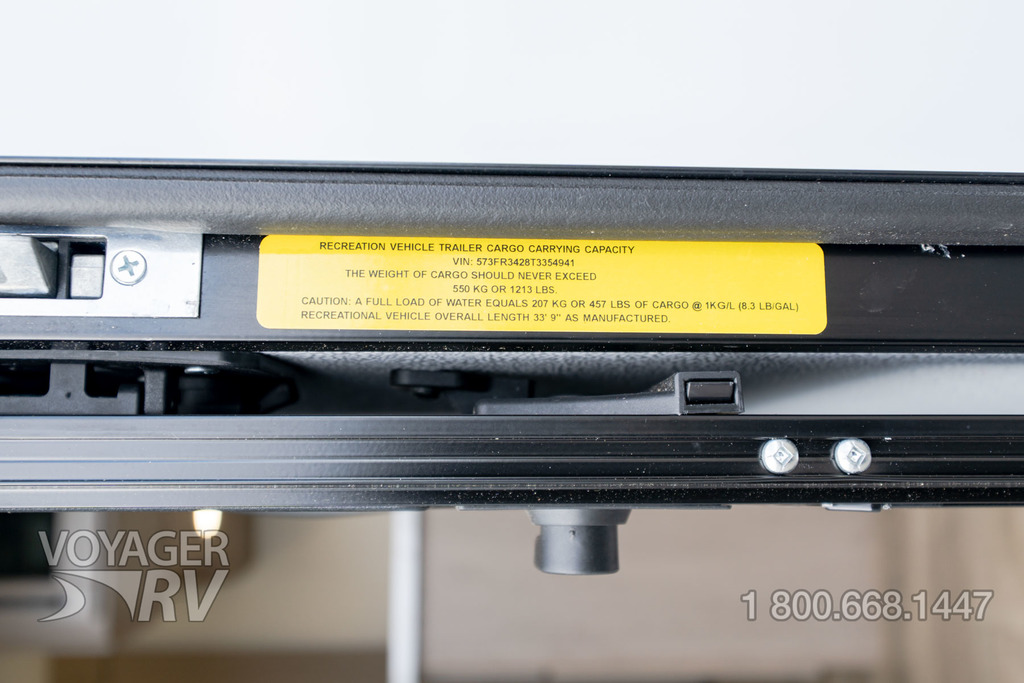 - Peace of Mind Package: Brass Plumbing Fixtures w/ Water Shutoffs at all Major Plumbing Sources, Hardwood Residential Cabinetry w/ Soft Close Hinges, Pull Out Trash Can Storage, Silverware Drawer, Pull Out Pet Dish, Hi-Rise Faucet w/ Pullout Hose, Stainless Steel Kitchen Sink w/ Roll-Up Sink Cover, Upgraded Furniture, Porcelain Toilet, Medicine Cabinet, True Queen Bed (60x80), Fully Painted Front Cap, Unobstructed Pass-Through Storage w/ Diamond Plate Flooring, MORryde “StebAbove” Entry Step, Extended Grab Handle, Screen Defender, Pet Leash Hitch, Lippert Thin Shade Prep, All-in-One Docking Station w/ EZ Winterization Valve, Lift Assist Front Cargo Door, Beltless Rolled Skirt Metal, LP Quick Connect, 6’ Coiled Break Away Cable, Aluminum Rims, Spare Tire w/ Undermount Carrier, 2” Receiver Hitch, 7-Way Plug Holder, Self-Adjusting Brakes, Banded TPMS, CounterAct Balance Beads, Reverse Lights, Exterior Mounted Ladder for Full Walk-On Roof Access.