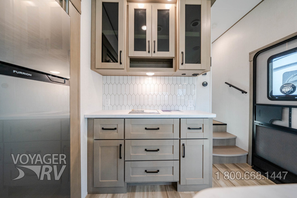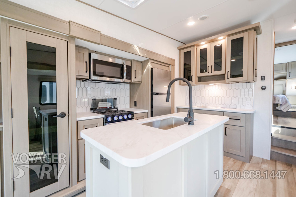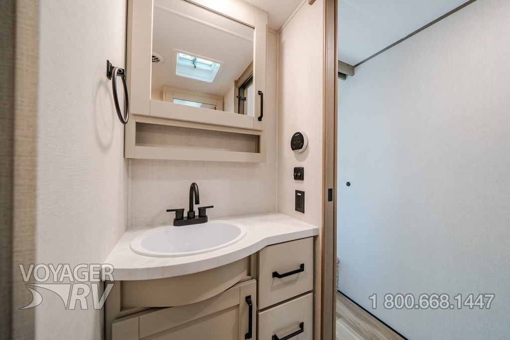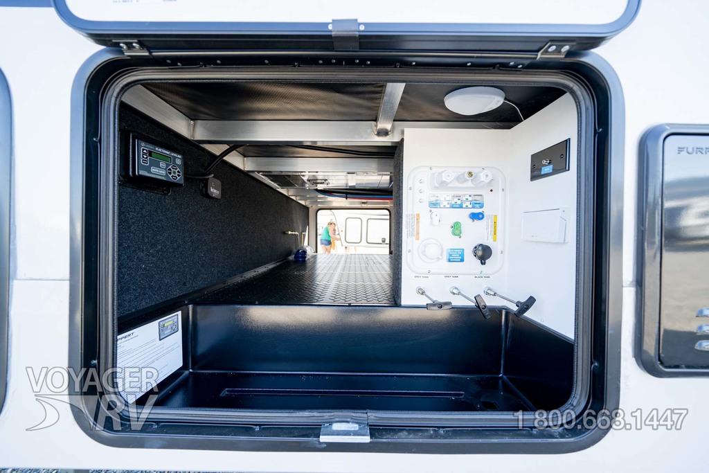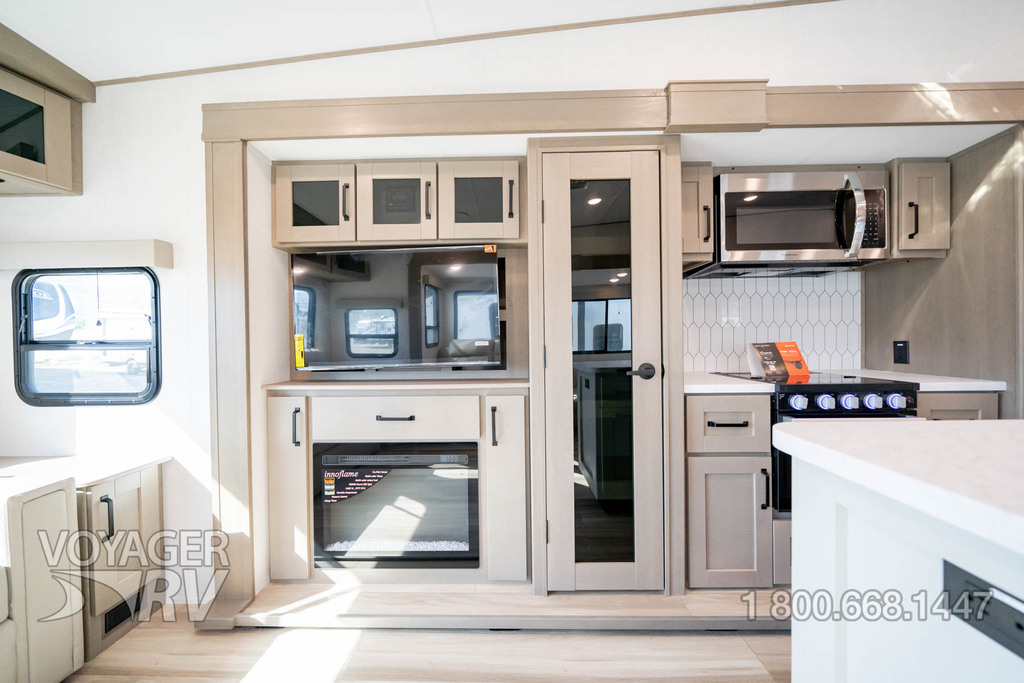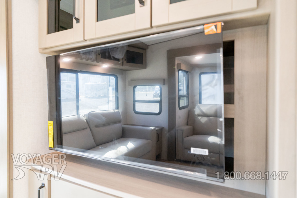 - Peace of Mind Package: Brass Plumbing Fixtures w/ Water Shutoffs at all Major Plumbing Sources, Hardwood Residential Cabinetry w/ Soft Close Hinges, Pull Out Trash Can Storage, Silverware Drawer, Pull Out Pet Dish, Hi-Rise Faucet w/ Pullout Hose, Stainless Steel Kitchen Sink w/ Roll-Up Sink Cover, Upgraded Furniture, Porcelain Toilet, Medicine Cabinet, True Queen Bed (60x80), Fully Painted Front Cap, Unobstructed Pass-Through Storage w/ Diamond Plate Flooring, MORryde “StebAbove” Entry Step, Extended Grab Handle, Screen Defender, Pet Leash Hitch, Lippert Thin Shade Prep, All-in-One Docking Station w/ EZ Winterization Valve, Lift Assist Front Cargo Door, Beltless Rolled Skirt Metal, LP Quick Connect, 6’ Coiled Break Away Cable, Aluminum Rims, Spare Tire w/ Undermount Carrier, 2” Receiver Hitch, 7-Way Plug Holder, Self-Adjusting Brakes, Banded TPMS, CounterAct Balance Beads, Reverse Lights, Exterior Mounted Ladder for Full Walk-On Roof Access.