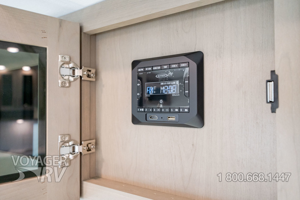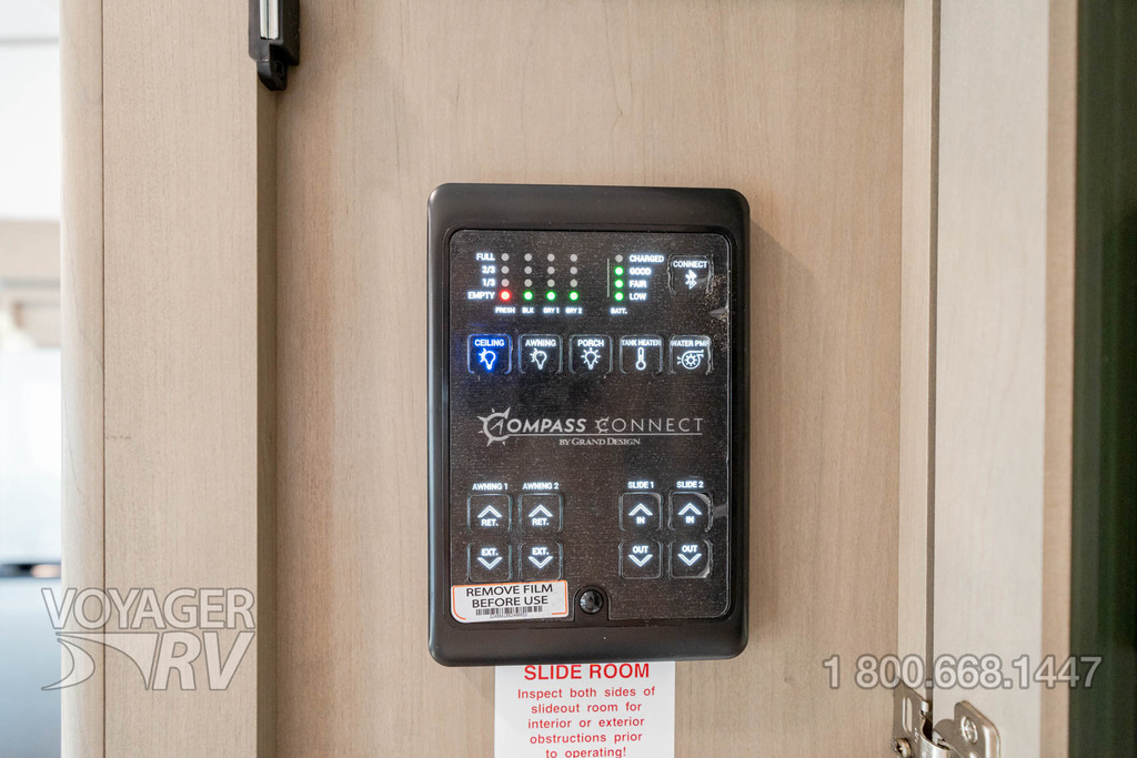 - Ultimate Power Package: 50 AMP Service, Microwave w/ Vented Range Hood, 18K Ducted Main A/C, MaxxAir Fan, Electric Awning, AM/FM Bluetooth Stereo, Smart TV, Detachable Power Cord, One Touch Automatic Leveling System, Compass Connect w/ Dimmable Lighting Feature, Motion Sensor Lights, LED Interior Lighting, Distribution Box.