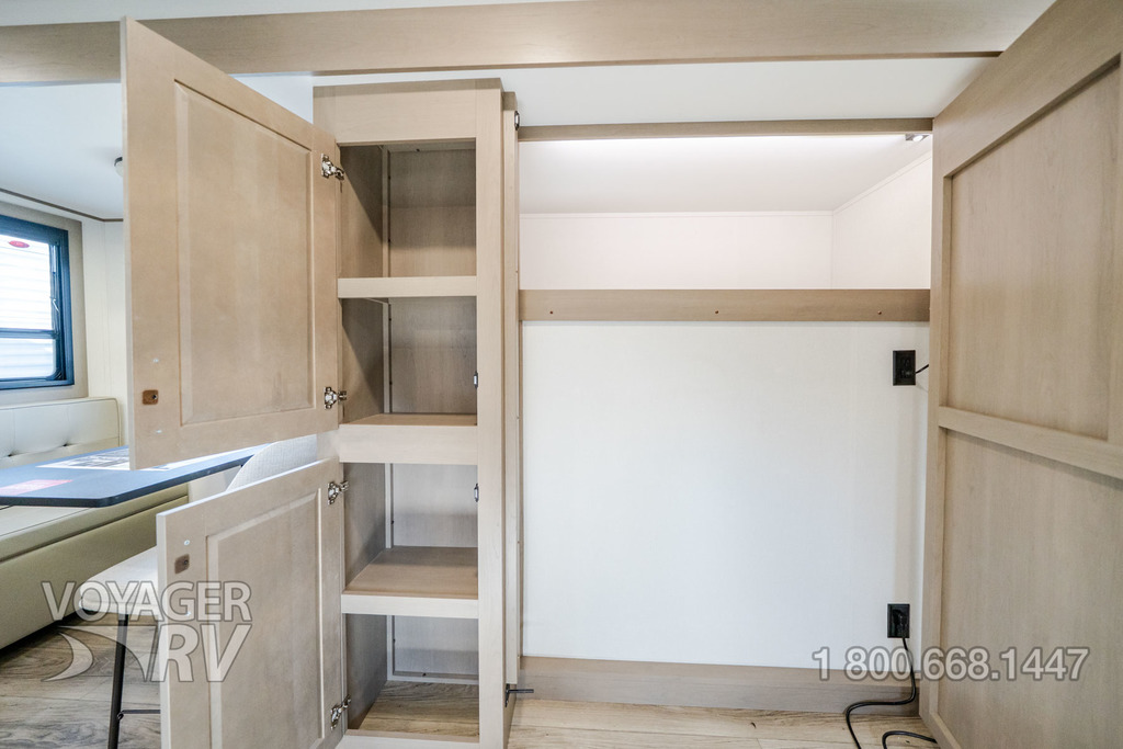 - Peace of Mind Package: Brass Plumbing Fixtures w/ Water Shutoffs at all Major Plumbing Sources, Hardwood Residential Cabinetry w/ Soft Close Hinges, Pull Out Trash Can Storage, Silverware Drawer, Spice Rack Drawer, Pull Out Pet Dish, Hi-Rise Faucet w/ Pullout Hose, Stainless Steel Kitchen Sink w/ Roll-Up Sink Cover, Solid Surface Countertop, Upgraded Furniture, Porcelain Toilet, Medicine Cabinet, True Queen Bed (60x80), Fully Painted Front Cap w/ Rock Guard, Unobstructed Pass-Through Storage w/ Diamond Plate Flooring, MORryde “StebAbove” Entry Step w/ Lift Assist, MORryde Safe-T Rail, Screen Defender, Pet Leash Hitch, Lippert Thin Shade Installed, All-in-One Docking Station w/ EZ Winterization Valve, Drop Frame Chassis, Lift Assist Front Cargo Door, Beltless Rolled Skirt Metal, LP Quick Connect, 6’ Coiled Break Away Cable, Aluminum Rims, Spare Tire w/ Undermount Carrier, 2” Receiver Hitch, 7-Way Plug Holder, MORryde CRE3000 Suspension, Self-Adjusting Brakes, Banded TPMS, CounterAct Balance Beads, Reverse Lights, Exterior Mounted Ladder for Full Walk-On Roof Access.
