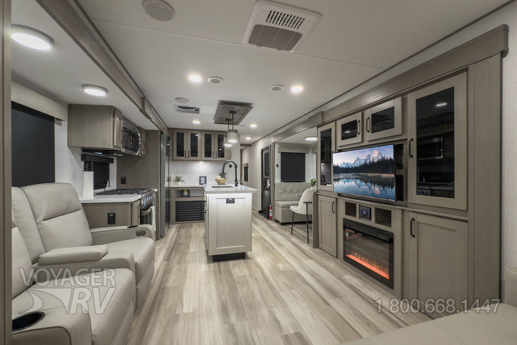 - Deep Season Protection Package: 35k BTU Furnace, EvenFlow Heating (Ductless Floors), Double Insulation Roof & Front Cap, Insulated Slideout Floors, Heated & Enclosed Underbelly w/ Forced Heat, Heated Pass-Through Storage w/ Dump Valve Access, 12V Heat Pads, On Demand Tankless Water Heater, Electric Fireplace.