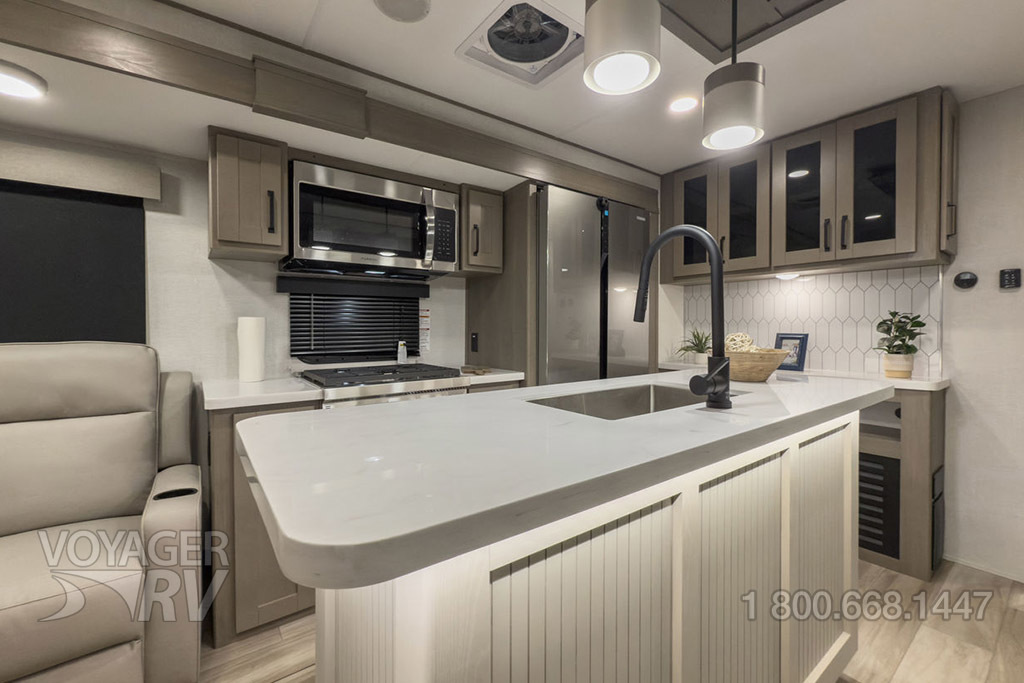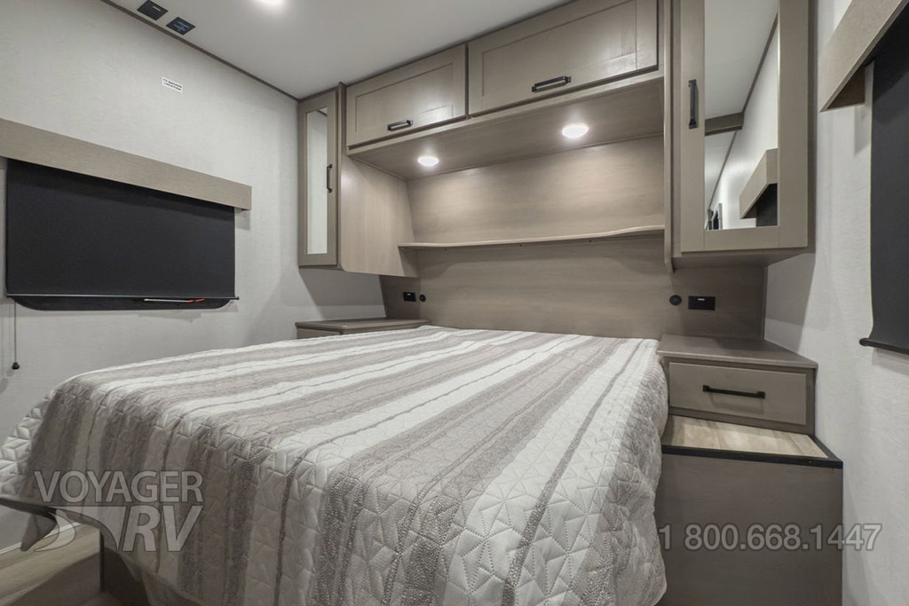 - Peace of Mind Package: Brass Plumbing Fixtures w/ Water Shutoffs at all Major Plumbing Sources, Hardwood Residential Cabinetry w/ Soft Close Hinges, Pull Out Trash Can Storage, Silverware Drawer, Spice Rack Drawer, Pull Out Pet Dish, Hi-Rise Faucet w/ Pullout Hose, Stainless Steel Kitchen Sink w/ Roll-Up Sink Cover, Solid Surface Countertop, Upgraded Furniture, Porcelain Toilet, Medicine Cabinet, True Queen Bed (60x80), Fully Painted Front Cap w/ Rock Guard, Unobstructed Pass-Through Storage w/ Diamond Plate Flooring, MORryde “StebAbove” Entry Step w/ Lift Assist, MORryde Safe-T Rail, Screen Defender, Pet Leash Hitch, Lippert Thin Shade Installed, All-in-One Docking Station w/ EZ Winterization Valve, Drop Frame Chassis, Lift Assist Front Cargo Door, Beltless Rolled Skirt Metal, LP Quick Connect, 6’ Coiled Break Away Cable, Aluminum Rims, Spare Tire w/ Undermount Carrier, 2” Receiver Hitch, 7-Way Plug Holder, MORryde CRE3000 Suspension, Self-Adjusting Brakes, Banded TPMS, CounterAct Balance Beads, Reverse Lights, Exterior Mounted Ladder for Full Walk-On Roof Access.