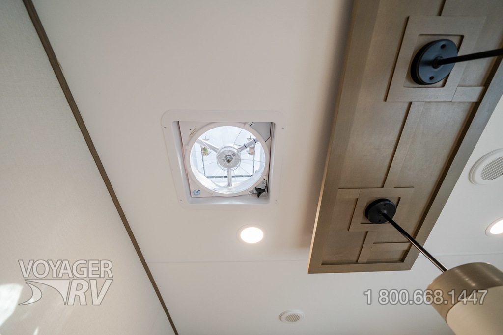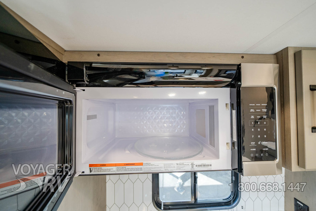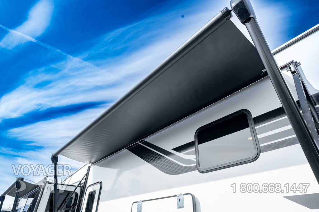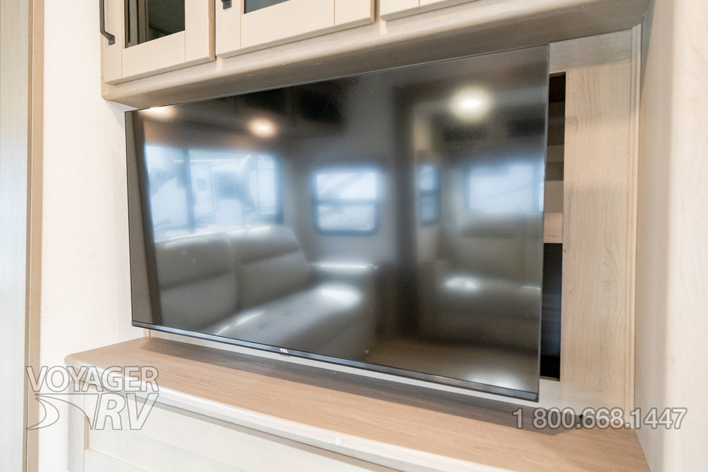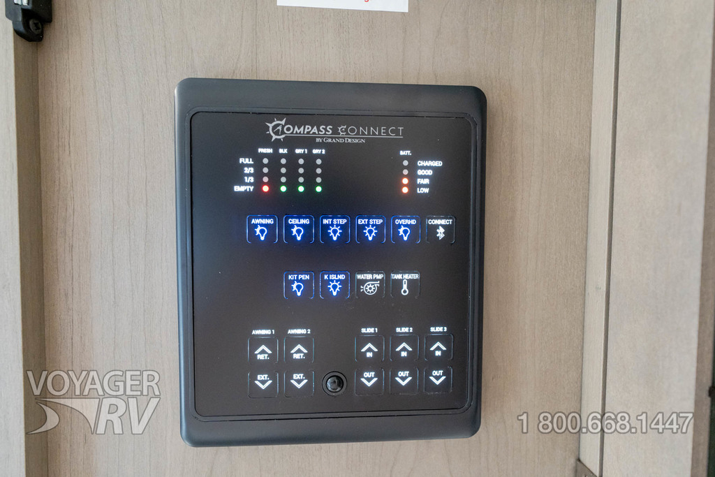 - Ultimate Power Package: 50 AMP Service w/ 2nd A/C Prep, Microwave w/ Vented Range Hood, MaxxAir Fan, Electric Awning, AM/FM Bluetooth Stereo, Smart TV, Detachable Power Cord, Compass Connect w/ Dimmable Lighting Feature, Motion Sensor Lights, LED Interior Lighting, Distribution Box.