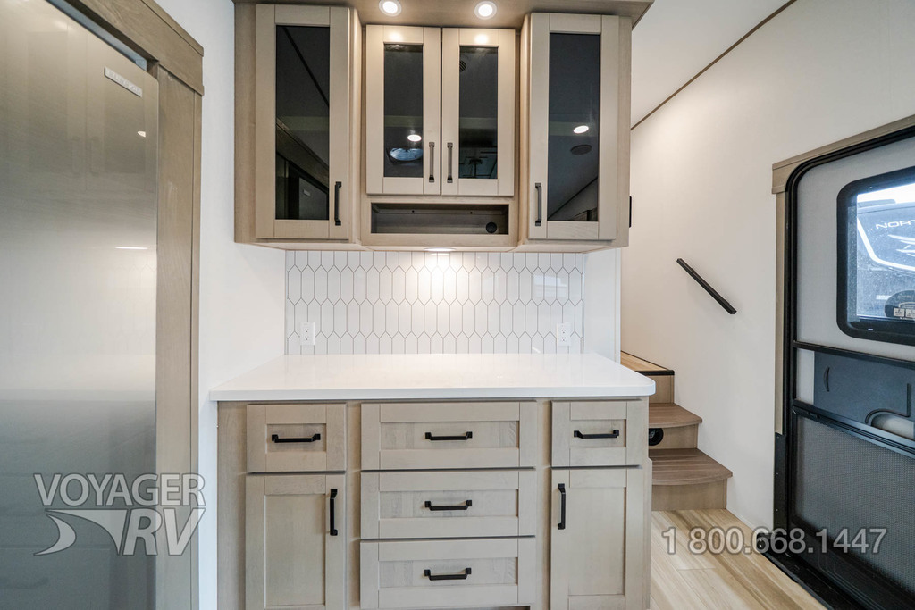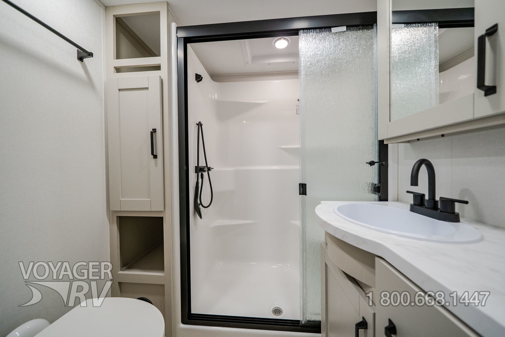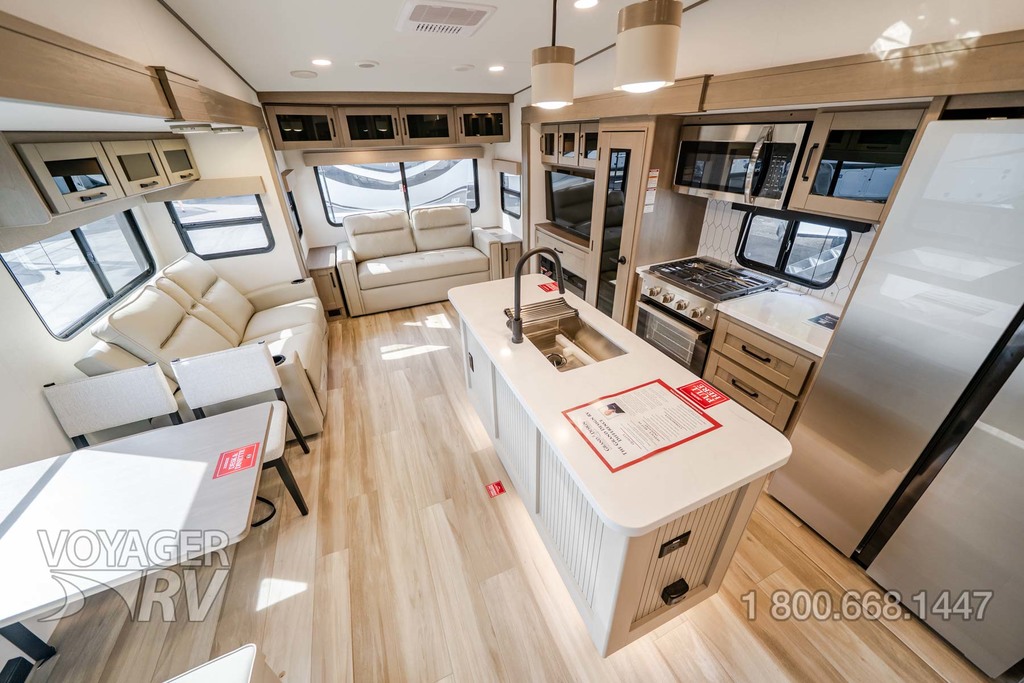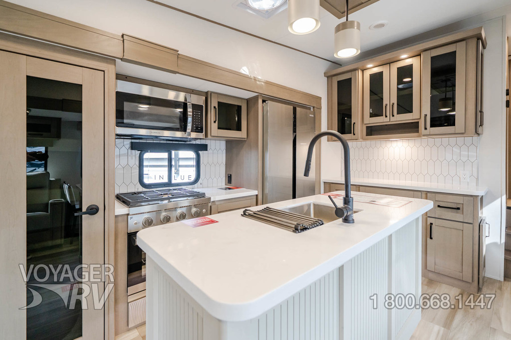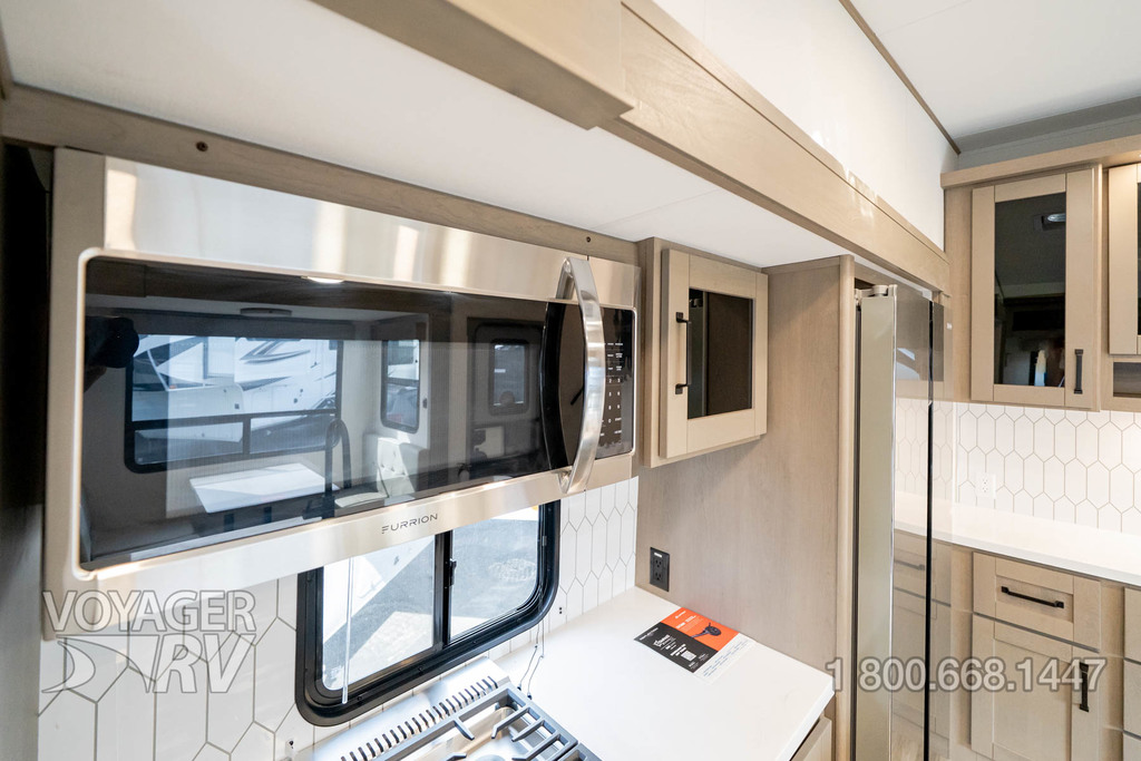 - Peace of Mind Package: Brass Plumbing Fixtures w/ Water Shutoffs at all Major Plumbing Sources, Hardwood Residential Cabinetry w/ Soft Close Hinges, Pull Out Trash Can Storage, Silverware Drawer, Spice Rack Drawer, Pull Out Pet Dish, Hi-Rise Faucet w/ Pullout Hose, Stainless Steel Kitchen Sink w/ Roll-Up Sink Cover, Solid Surface Countertop, Upgraded Furniture, Porcelain Toilet, Medicine Cabinet, Fully Painted Front Cap, Unobstructed Pass-Through Storage w/ Diamond Plate Flooring, MORryde “StebAbove” Entry Step w/ Lift Assist, MORryde Safe-T Rail, Screen Defender, Pet Leash Hitch, Lippert Thin Shade Installed, All-in-One Docking Station w/ EZ Winterization Valve, Lift Assist Front Cargo Door, Beltless Rolled Skirt Metal, LP Quick Connect, 6’ Coiled Break Away Cable, Aluminum Rims, Spare Tire w/ Undermount Carrier, 2” Receiver Hitch, 7-Way Plug Holder, MORryde CRE3000 Suspension, Self-Adjusting Brakes, Banded TPMS, CounterAct Balance Beads, Reverse Lights, Exterior Mounted Ladder for Full Walk-On Roof Access.