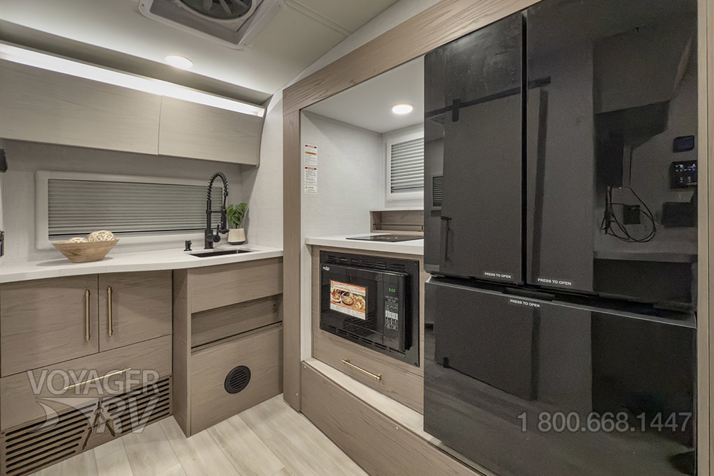 - Serenova Launch Package: Light-Weight Acrylic Windows with Integrated Window Shades, Dry Bath with Separate Shower, Separate Sink, Separate Toilet, 12V 8 CU FT French Door Refrigerator, Imported Italian Cabinetry with Soft Close Hinges & Drawer Glides, Hight-Efficiency Ultra-Low Profile AC System, Compass Connect, 24" LED TV, Soft Touch Ceiling Panels, 12V MAXAire Power Fan, LED Flush Mount Interior Lighting, Induction Cooktop, Convection Microwave, Residential Kitchen Sink with Pullout Faucet, On-Demand 60K Tankless Water Heater.