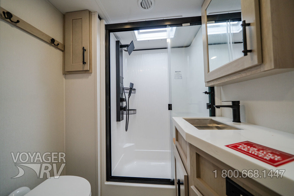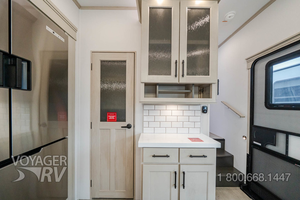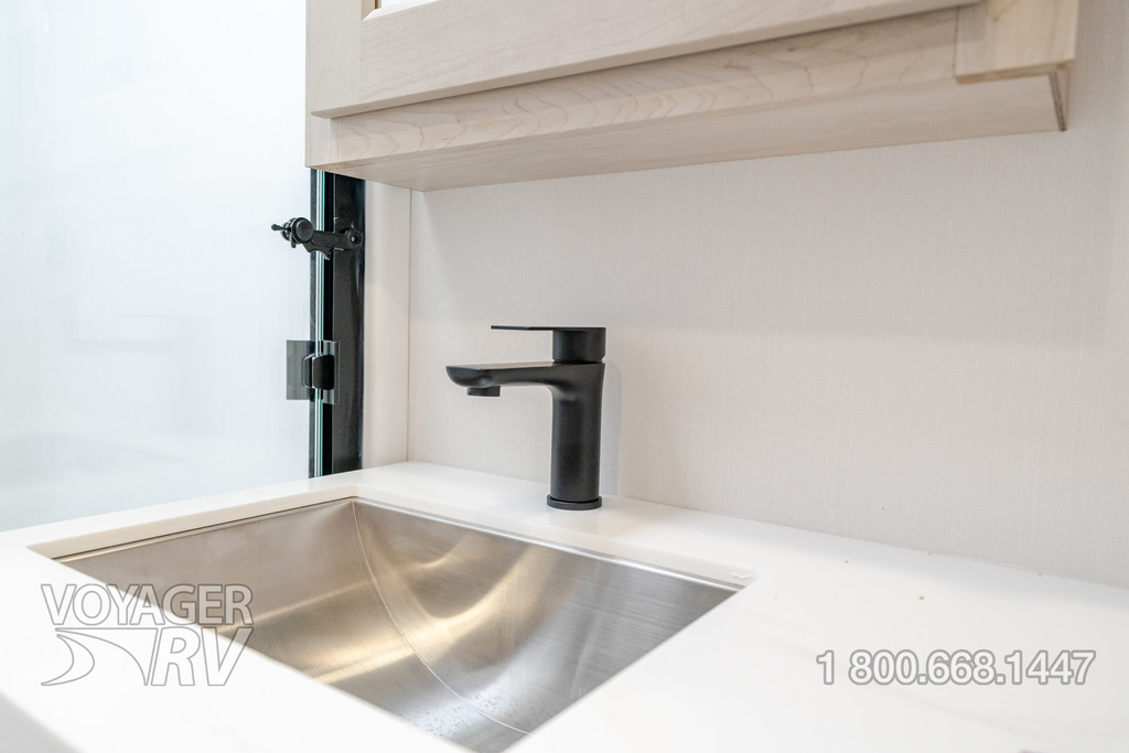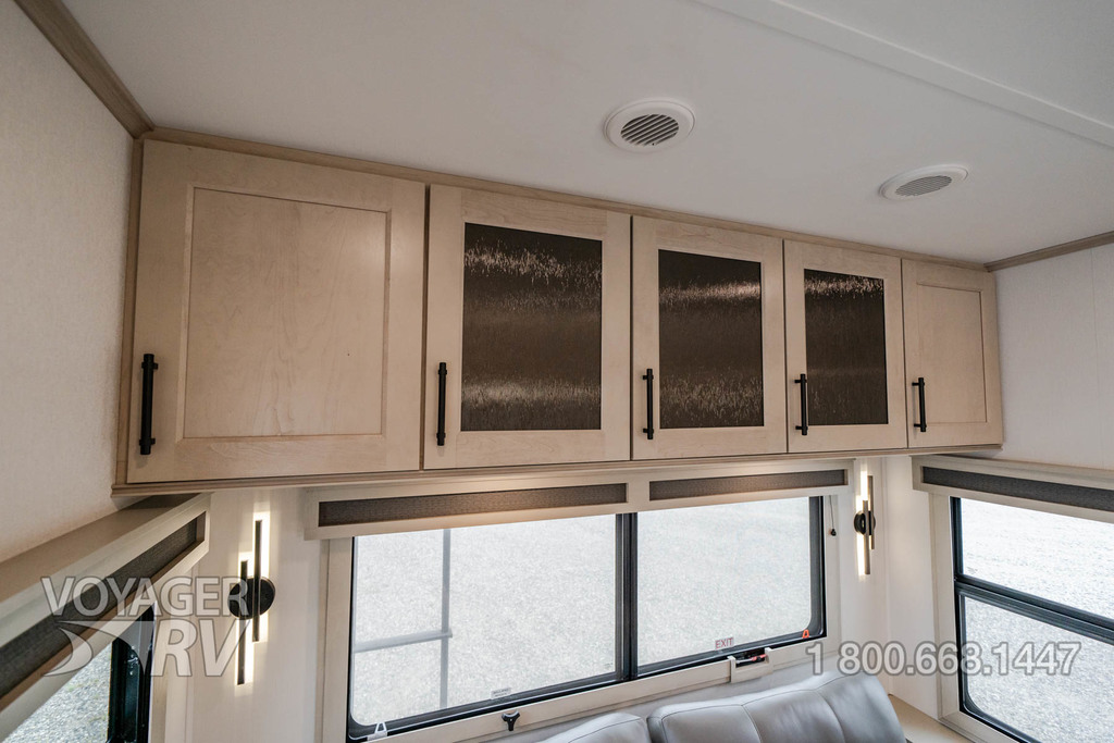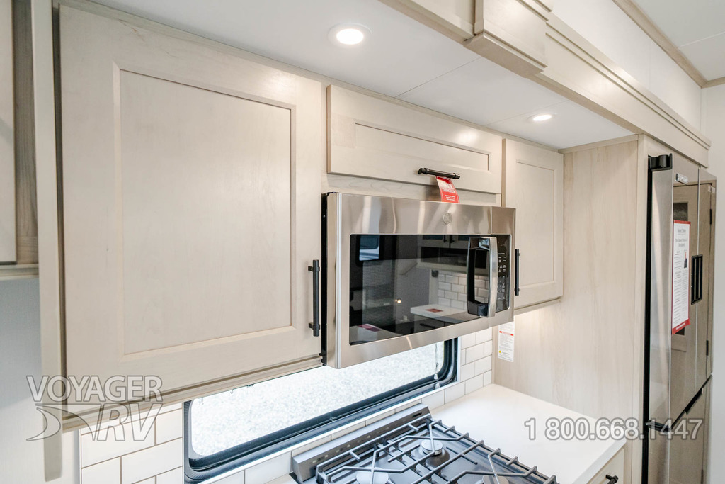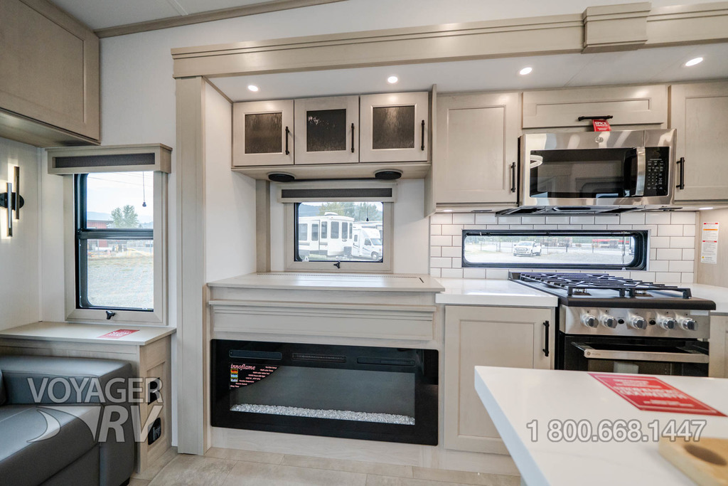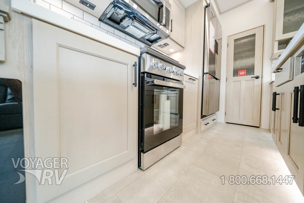 - Residential Living Package: LED Smart TV in Living Area, Rockford Fosgate Stereo Ent. System w/ HDMI and App Controls, Exterior Speakers, Night Stands with USB Ports, Bedside 110-Volt Outlets (2), Keyed Alike, MORryde Strut Assist Entry Steps, Stealth A/C System, Premium Roller Shades, Hardwood Window Treatments, Congoleum Flooring w/3-Year Warranty, Hallway Handrail, Recessed LED Ceiling Lighting, Interior LED Accent Lighting, Hardwood Cabinet Doors, Signature Wall Mounted Dinette Table w/4 Padded Chairs, Theater Seating, Tri-Fold Hide-A-Bed Sofa, Smoke Detector, LP Alarm, Carbon Monoxide Alarm, Solid Surface Countertops, Smart Sink w/ removeable cutting board, produce strainer and glass rinser.