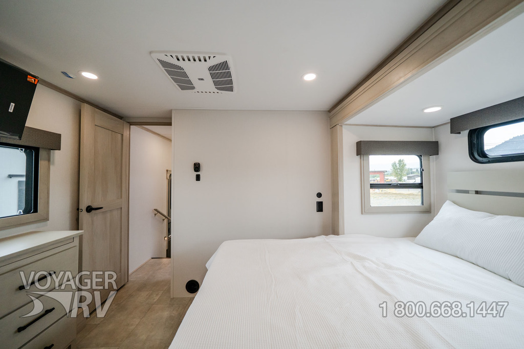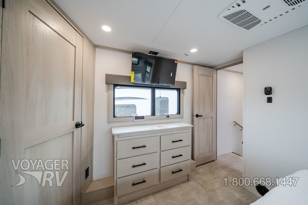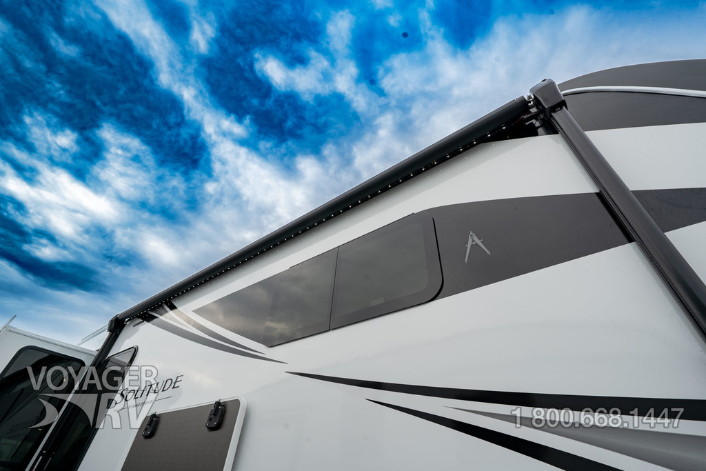 - Peace of Mind Package: Exterior Cable/Satellite Plug-In, Dresser w/ Slide-Top Hidden Storage, MORryde Pin Box, MORryde CRE3000 Suspension System, Tow Assist ABS & Sway Mitigation System, 17.5" Spare Tire (Undermount), Power Patio Awning with Integrated LED Lighting, Sewer Hose Storage Area, Kitchen 12-Volt High Power MaxxAir Fan with Rain Sensor, Washer/Dryer Prep, Whole House Water Filtration System, Easy Clean Solid Surface Steps.