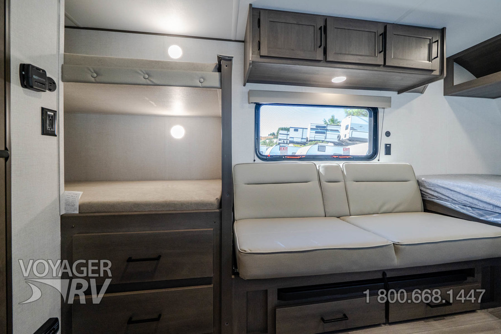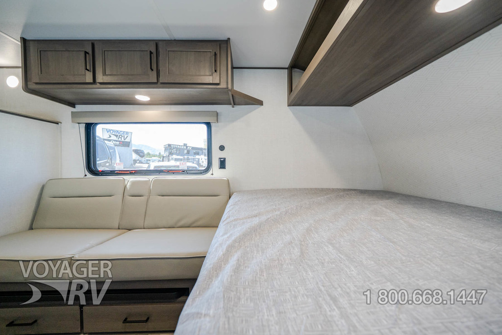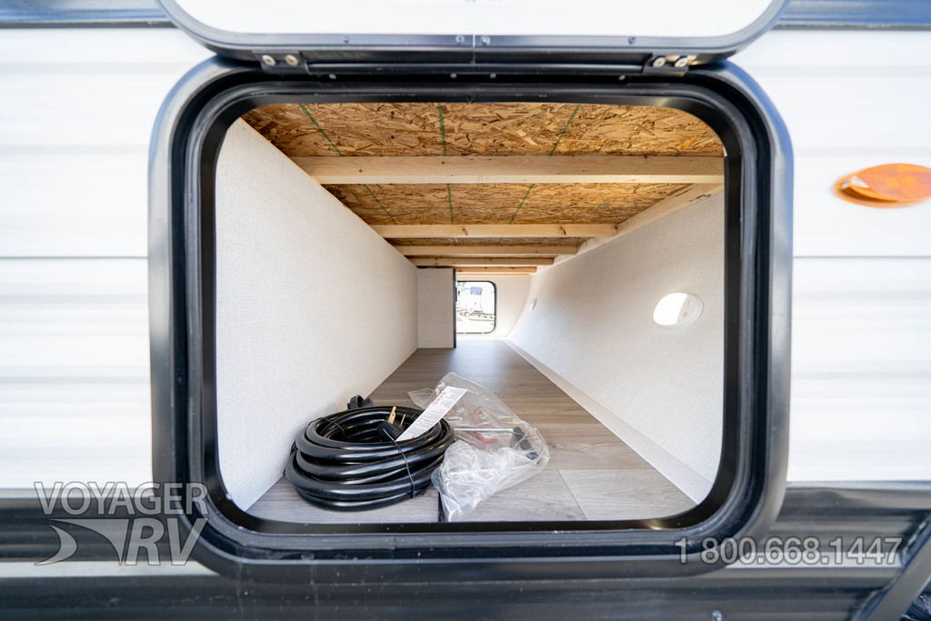 - ONE Craft and Comfort Package: Quad Seal Technology, 8' Width, 6'6" Interior Height, Stud Premium Lumber, Fully Walkable Roof, Roof Mount A/C, Radial Tires w/ Counteract Balancing Beads, Lumbercore Screwed Cabinet Styles, Magnetic Storage Door Catches, Extended Grab Handle, Tinted Windows, Galvanized Wheel Wells, Motion Sensor Lights in Passthrough, Backup Camera Prep, Spare Tire w/Carrier, Black Tank Flush, Rear Ladder Prep, Undermount Hose Storage, Transcend License Plate.