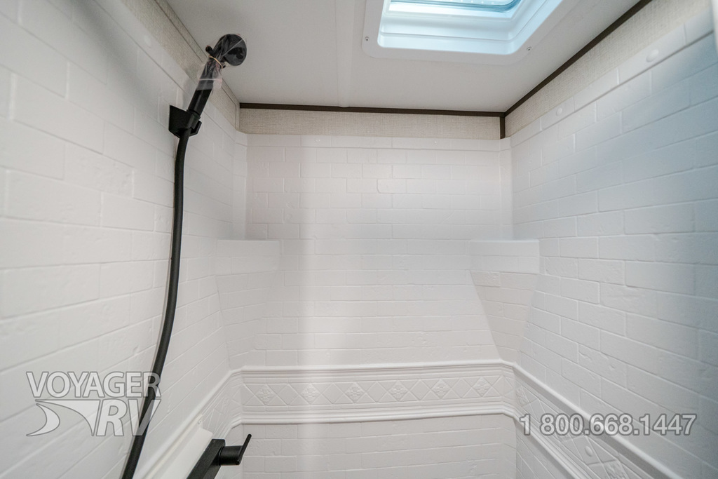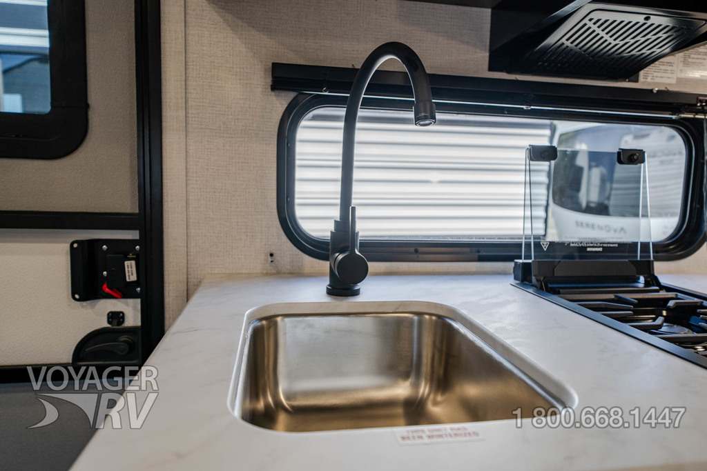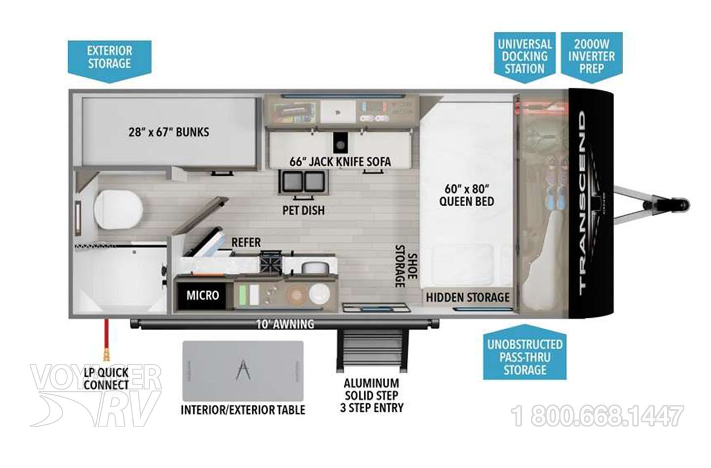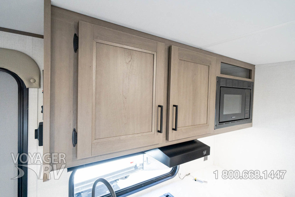 - ONE Craft and Comfort Package: Quad Seal Technology, 8' Width, 6'6" Interior Height, Stud Premium Lumber, Fully Walkable Roof, Roof Mount A/C, Radial Tires w/ Counteract Balancing Beads, Lumbercore Screwed Cabinet Styles, Magnetic Storage Door Catches, Extended Grab Handle, Tinted Windows, Galvanized Wheel Wells, Motion Sensor Lights in Passthrough, Backup Camera Prep, Spare Tire w/Carrier, Black Tank Flush, Rear Ladder Prep, Undermount Hose Storage, Transcend License Plate.