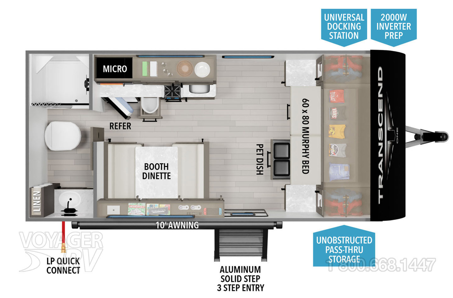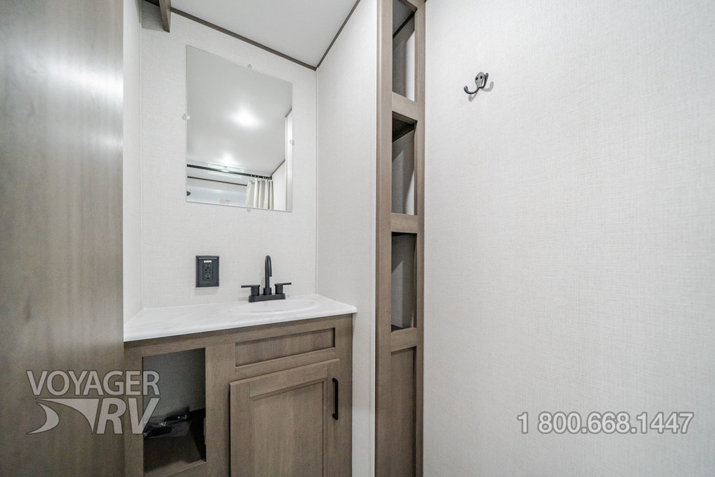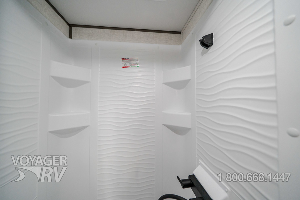 - ONE Craft and Comfort Package: Quad Seal Technology, 8' Width, 6'6" Interior Height, Stud Premium Lumber, Fully Walkable Roof, Roof Mount A/C, Radial Tires w/ Counteract Balancing Beads, Lumbercore Screwed Cabinet Styles, Magnetic Storage Door Catches, Extended Grab Handle, Tinted Windows, Galvanized Wheel Wells, Motion Sensor Lights in Passthrough, Backup Camera Prep, Spare Tire w/Carrier, Black Tank Flush, Rear Ladder Prep, Undermount Hose Storage, Transcend License Plate.