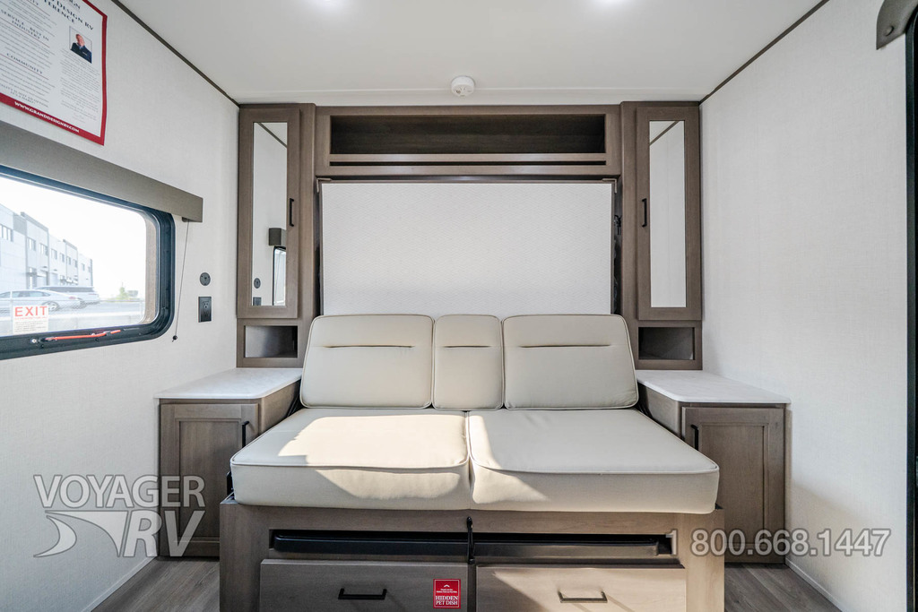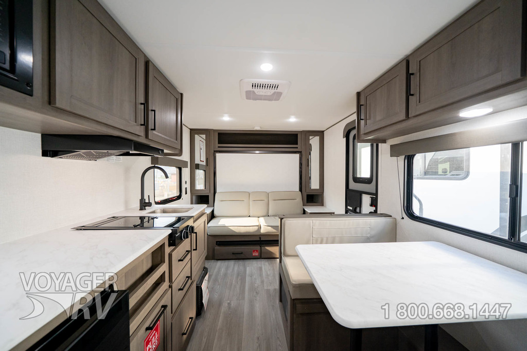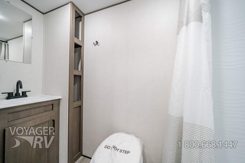 - ONE Craft and Comfort Package: Quad Seal Technology, 8' Width, 6'6" Interior Height, Stud Premium Lumber, Fully Walkable Roof, Roof Mount A/C, Radial Tires w/ Counteract Balancing Beads, Lumbercore Screwed Cabinet Styles, Magnetic Storage Door Catches, Extended Grab Handle, Tinted Windows, Galvanized Wheel Wells, Motion Sensor Lights in Passthrough, Backup Camera Prep, Spare Tire w/Carrier, Black Tank Flush, Rear Ladder Prep, Undermount Hose Storage, Transcend License Plate.