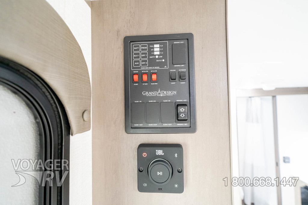 - ONE Power and Entertainment Package: JBL Head Unit, JBL Interior and Exterior Speakers, Flush Mount Interior Lighting, Power Awning w/ Exterior Fusion Light, USB Ports, HD TV Antenna.