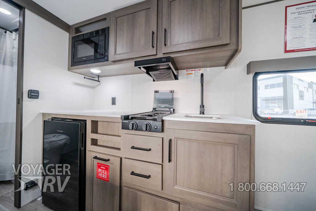 - ONE Premier Kitchen Package: 12V 3.3 Cube Refrigerator and Freezer w/ Glass Front, Paper Towel Holder, Integrated Spice Rack, Kitchen Soap Dispenser, Drawers w/ Metal Drawer Guides, Thermoformed and Seamless Countertop, 2-Burner Range w/ Glass Cover, Multiple Outlets.
