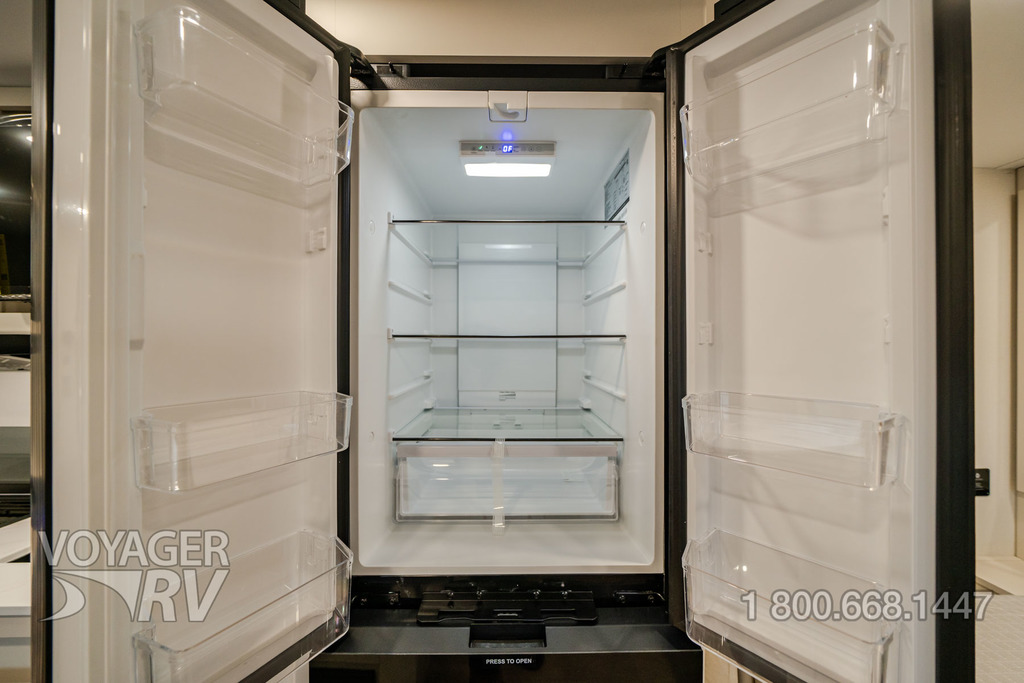 - XPLOR Premier Kitchen Package: 12V 10.2 Cube French Door Refrigerator w/Glass Front and Bottom Freezer, Dedicated Pots and Pans Storage Drawers, Paper Towel Holder, Under Cabinet Accent Lighting, Integrated Spice Rack, Black Metal Single Basin Kitchen Sink, Kitchen Soap Dispenser, Drawers w/ Metal Drawer Guides, Thermoformed and Seamless Countertop, 3-Burner Range w/ Glass Cover, Pull-Down Spray Faucet, Multiple Outlets.