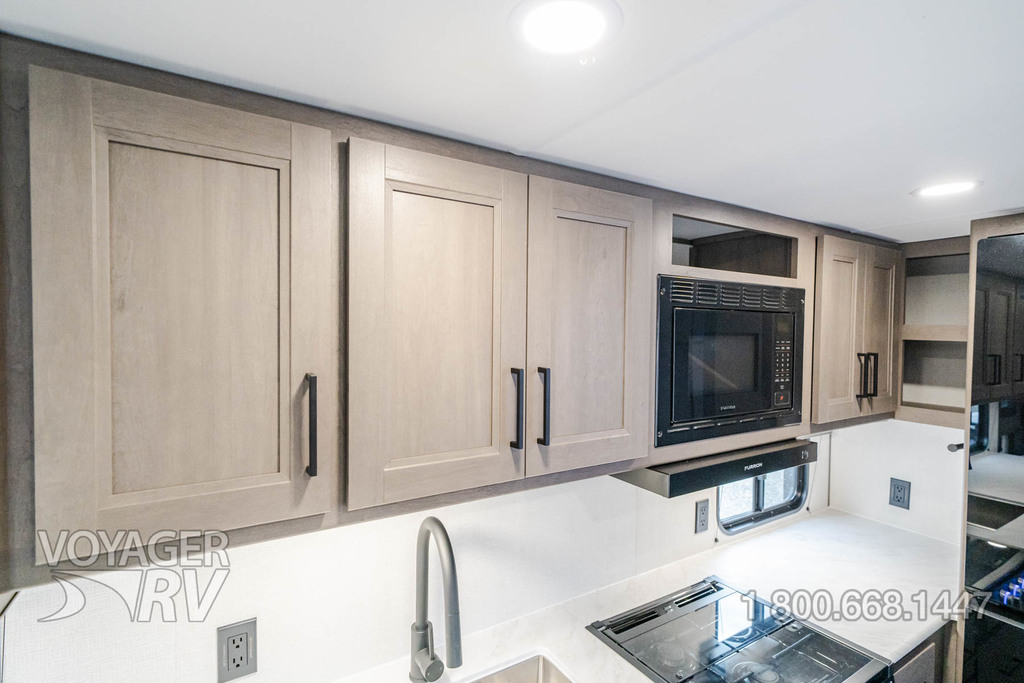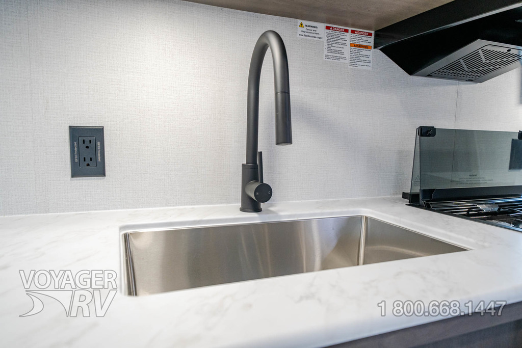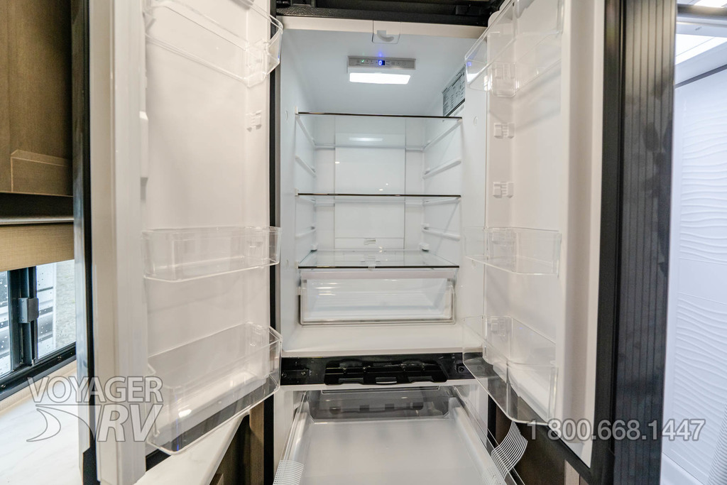 - XPLOR Premier Kitchen Package: 12V 10.2 Cube French Door Refrigerator w/Glass Front and Bottom Freezer, Dedicated Pots and Pans Storage Drawers, Paper Towel Holder, Under Cabinet Accent Lighting, Integrated Spice Rack, Black Metal Single Basin Kitchen Sink, Kitchen Soap Dispenser, Drawers w/ Metal Drawer Guides, Thermoformed and Seamless Countertop, 3-Burner Range w/ Glass Cover, Pull-Down Spray Faucet, Multiple Outlets.