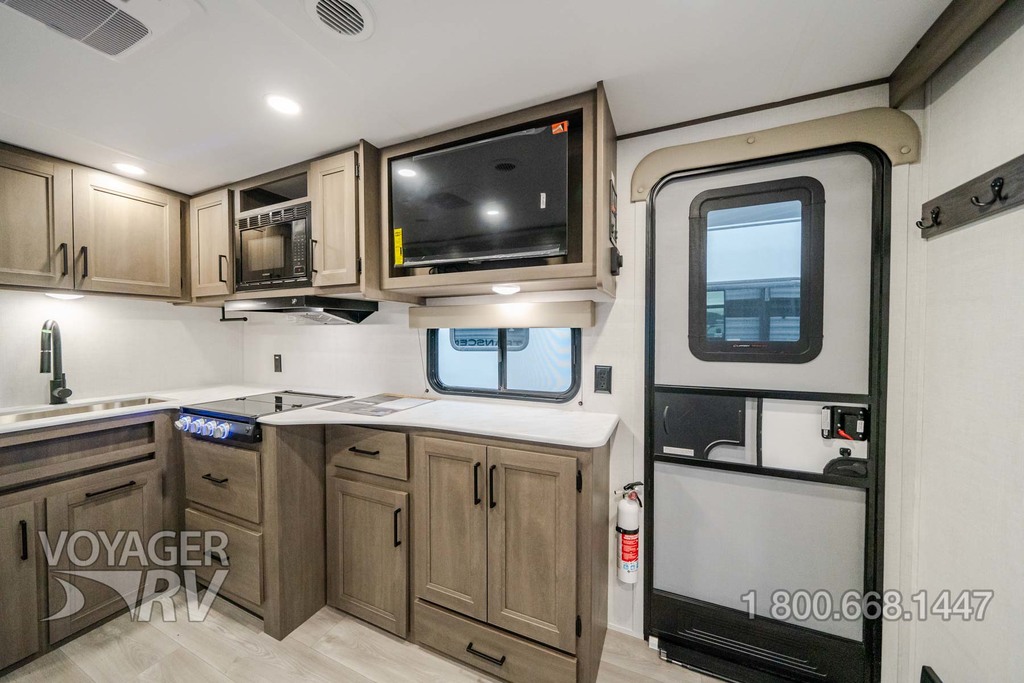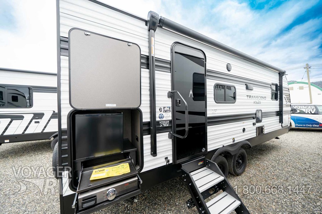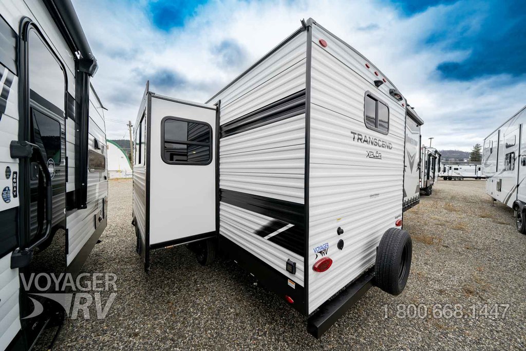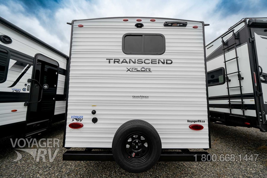 - Tinted Windows, Black Automotive Glass Door, Galvanized Wheel Wells, Motion Sensor Lights in Passthrough, Backup Camera Prep, Spare Tire w/ Carrier, Black Tank Flush, Rear Ladder Prep, 6'6" Interior Height, Transcend License Plate.