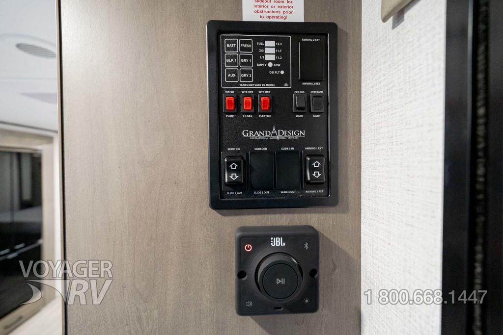 - Connectivity and Entertainment Package: Starlink Prep, JBL Head Unit, JBL Interior and Exterior Speakers, Power Awning w/ LED Fusion Light, Power Tongue Front Jack, USB Ports, HD TV Antenna.