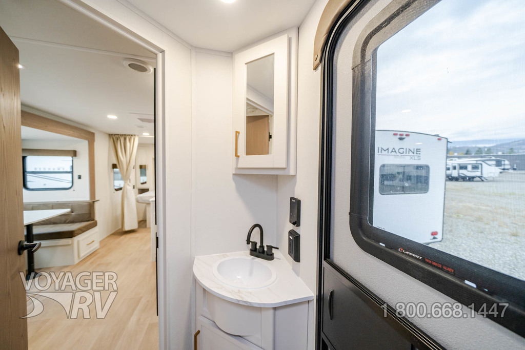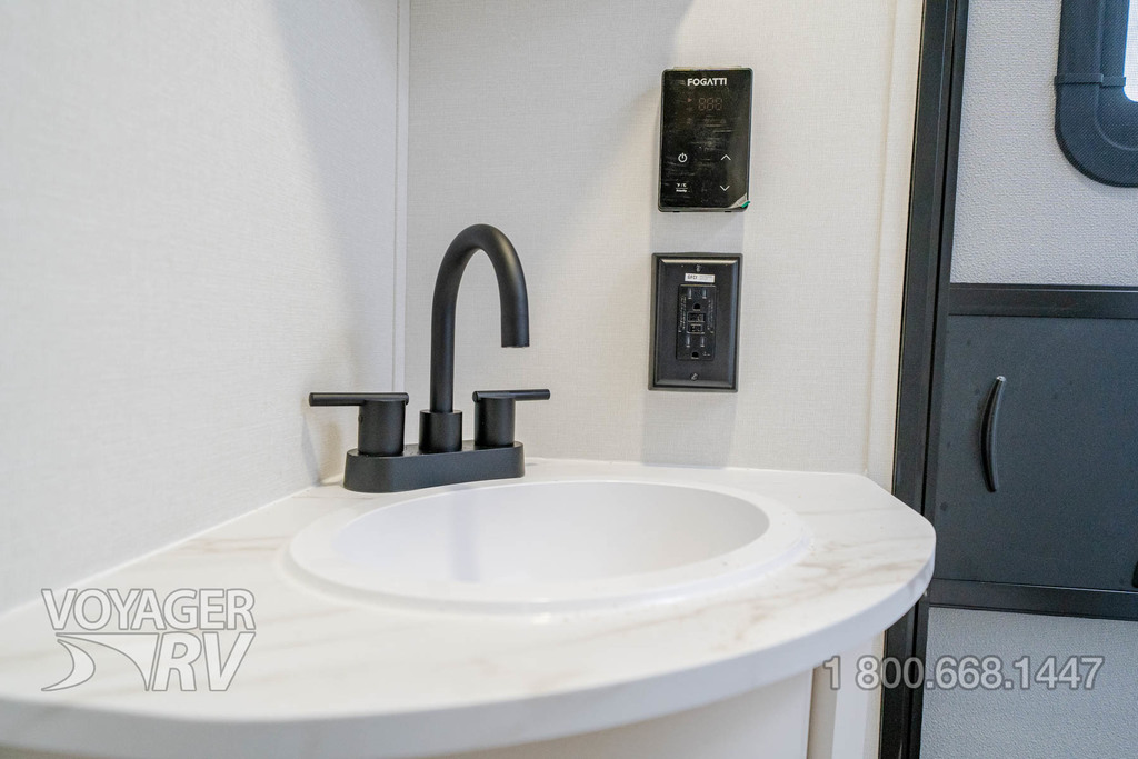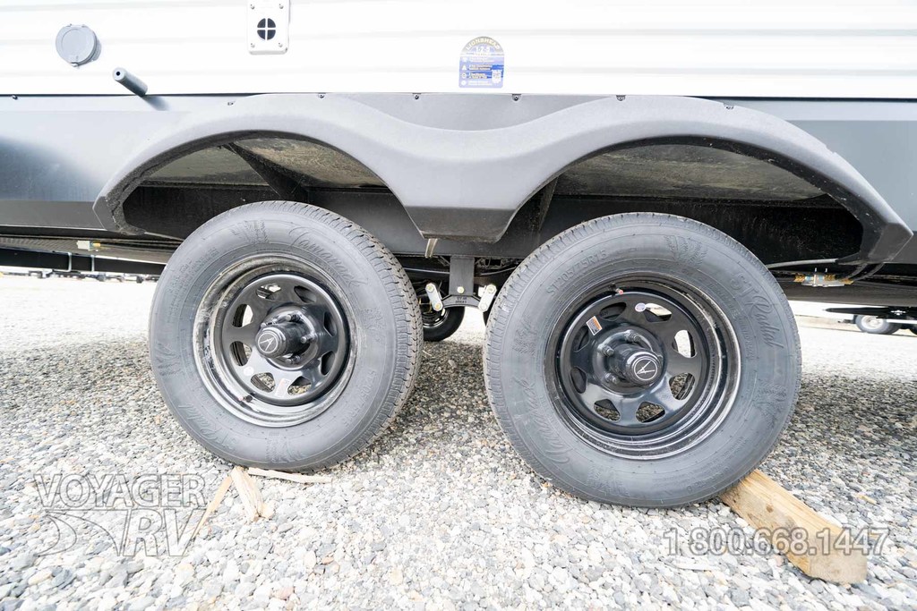 - Craft and Comfort Package: Quad Seal Technology, Stud Premium Lumber, Magnetic Interior Door Cabinet Catches, Fully Walkable Roof, Roof Mount Ducted A/C, Radial Tires w/ Counteract Balancing Beads, Lumbercore Screwed Cabinet Styles, Magnetic Exterior Storage Door Catches, Extended Grab Handle, Tinted Windows, Black Automotive Glass Door, Galvanized Wheel Wells, Motion Sensor Lights in Passthrough, Backup Camera Prep, Spare Tire w/ Carrier, Black Tank Flush, Rear Ladder Prep, 6'6" Interior Height, Transcend License Plate.