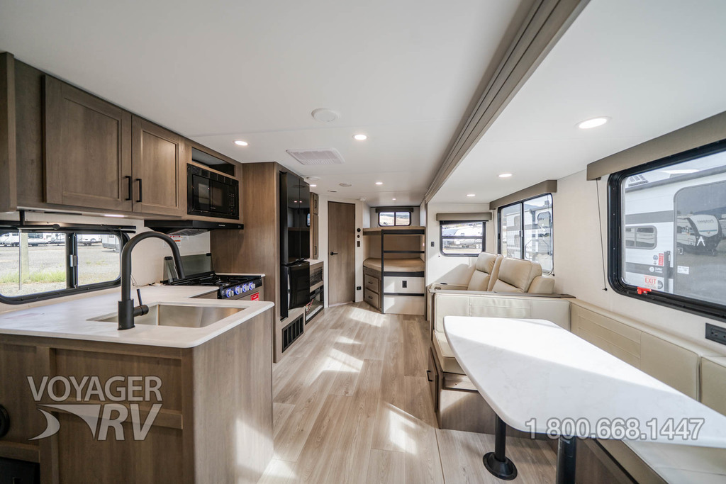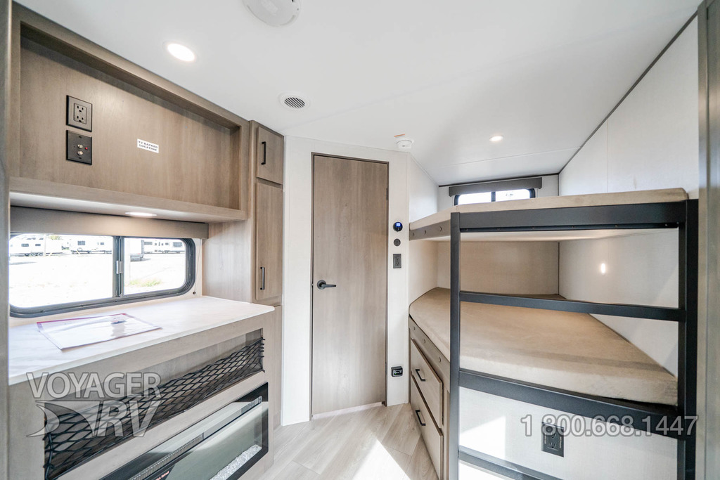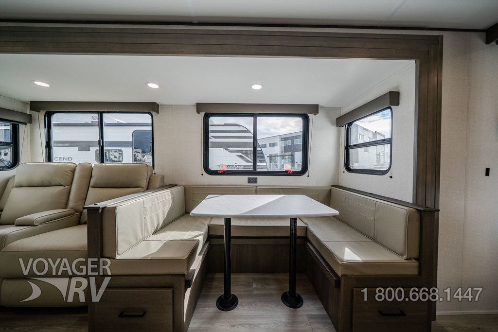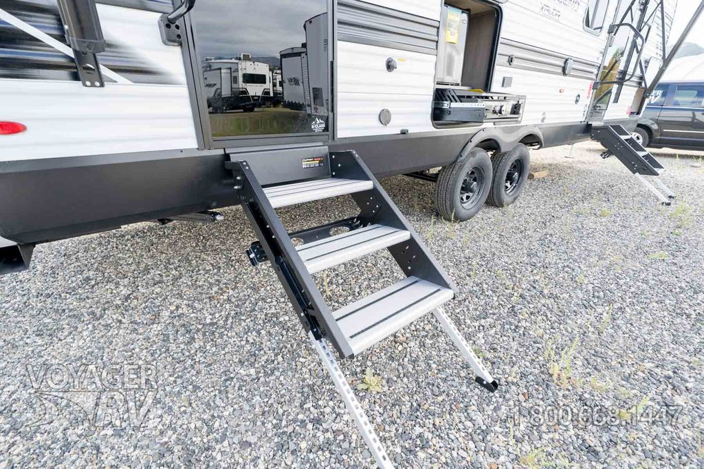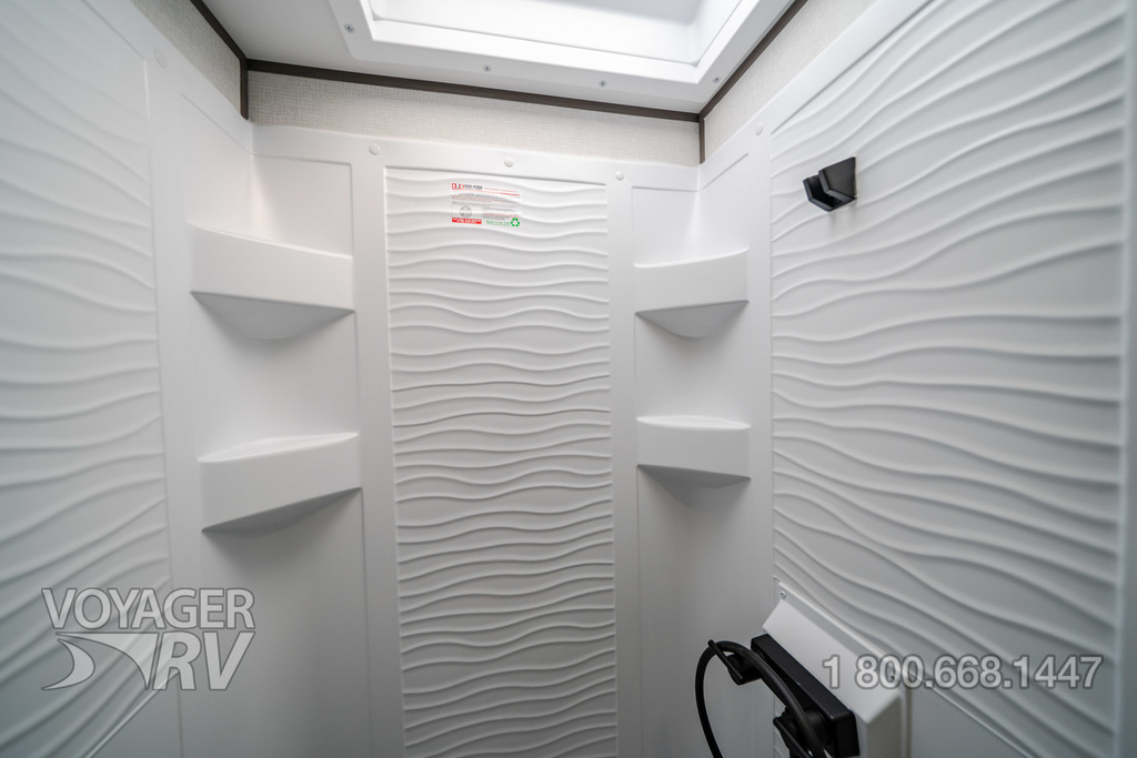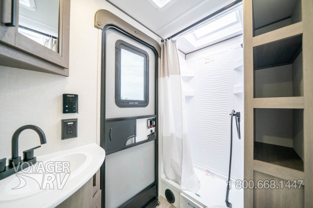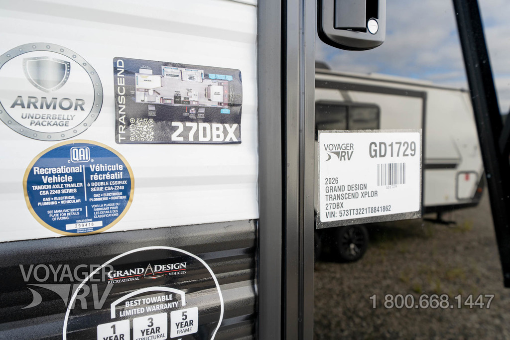- Craft and Comfort Package: Quad Seal Technology, Stud Premium Lumber, Magnetic Interior Door Cabinet Catches, Fully Walkable Roof, Roof Mount Ducted A/C, Radial Tires w/ Counteract Balancing Beads, Lumbercore Screwed Cabinet Styles, Magnetic Exterior Storage Door Catches, Extended Grab Handle, Tinted Windows, Black Automotive Glass Door, Galvanized Wheel Wells, Motion Sensor Lights in Passthrough, Backup Camera Prep, Spare Tire w/ Carrier, Black Tank Flush, Rear Ladder Prep, 6'6" Interior Height, Transcend License Plate.
