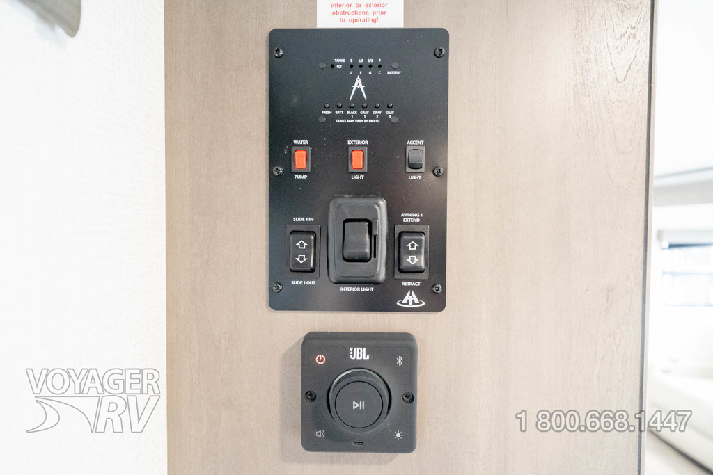 - Connectivity and Entertainment Package: Starlink Prep, JBL Head Unit, JBL Interior and Exterior Speakers, Power Awning w/ LED Fusion Light, Power Tongue Front Jack, USB Ports, HD TV Antenna.
