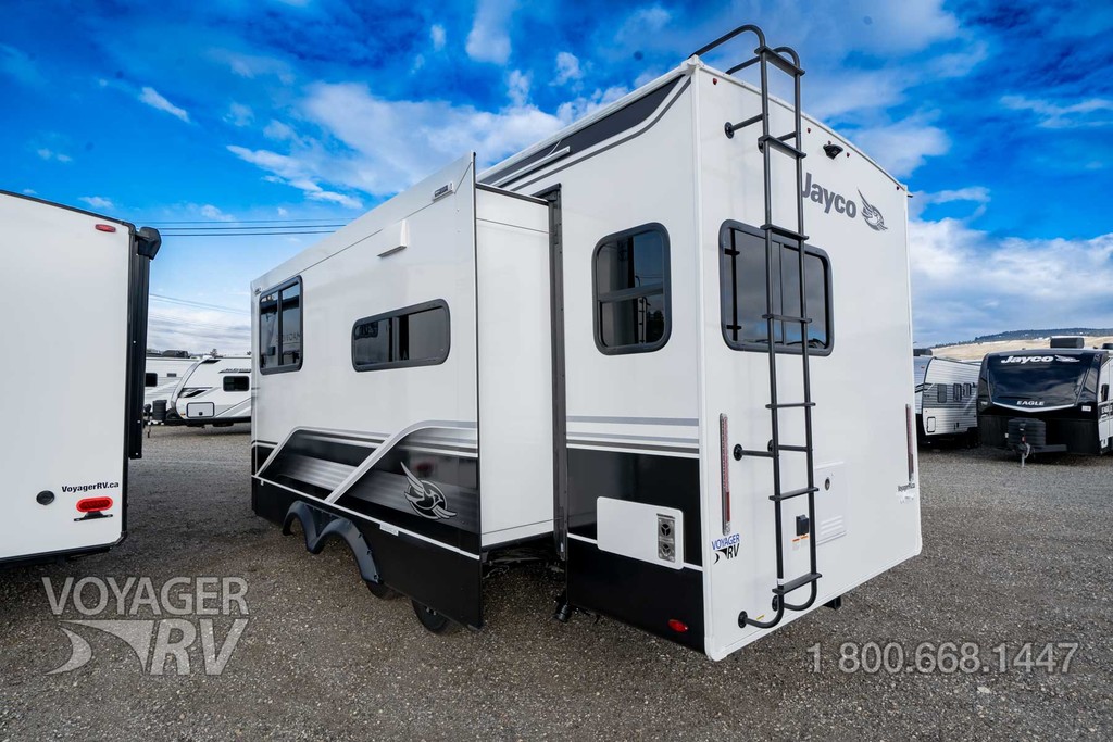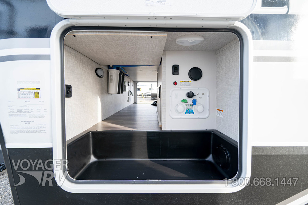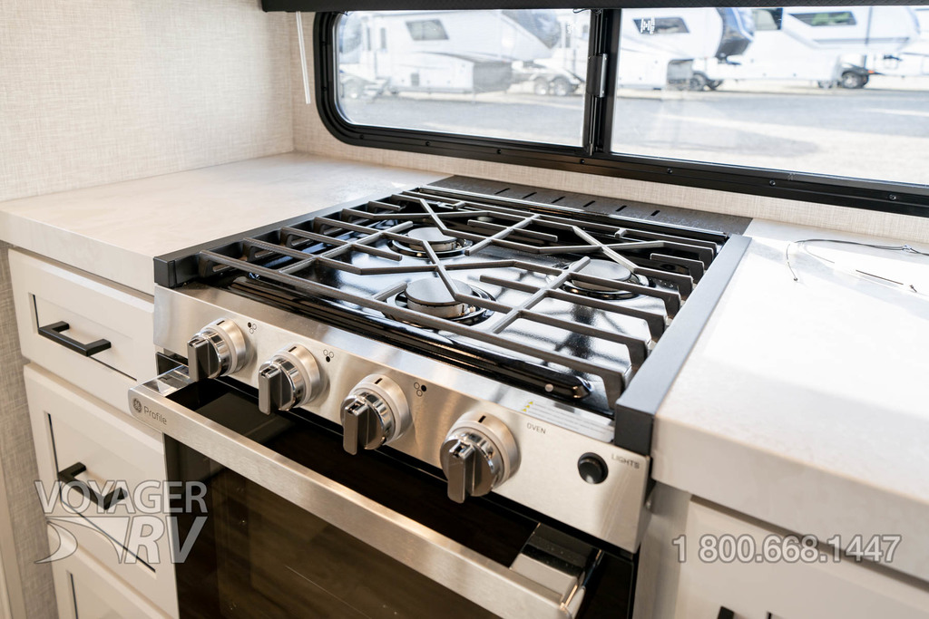 - Luxury Package: Blackout Roller Shades with Reflective Side Throughout, GE Black Glass 10 Cu.Ft. 12V Refrigerator , JayPort 2" Mount for Outside Accessories, Residential Style Glass Shower Door, Washer/Dryer Prep (Select Models), GE 30" OTR Black and Stainless Microwave with Exhaust Fan, GE Black and Stainless 21" Range with Edge to Edge Grates, Inverter Pre-Wire (Multiple Locations), Multi-Function "All In One" Black Stainless Steel Kitchen Sink, Olympic 66"x80" Residential Mattress, Magnetic Catches For All Doors & Drawers, Solid Surface Kitchen Countertop(s), JayCommand with Monitor Switch Panel, Exterior Light & Outlet at JayPort Location.