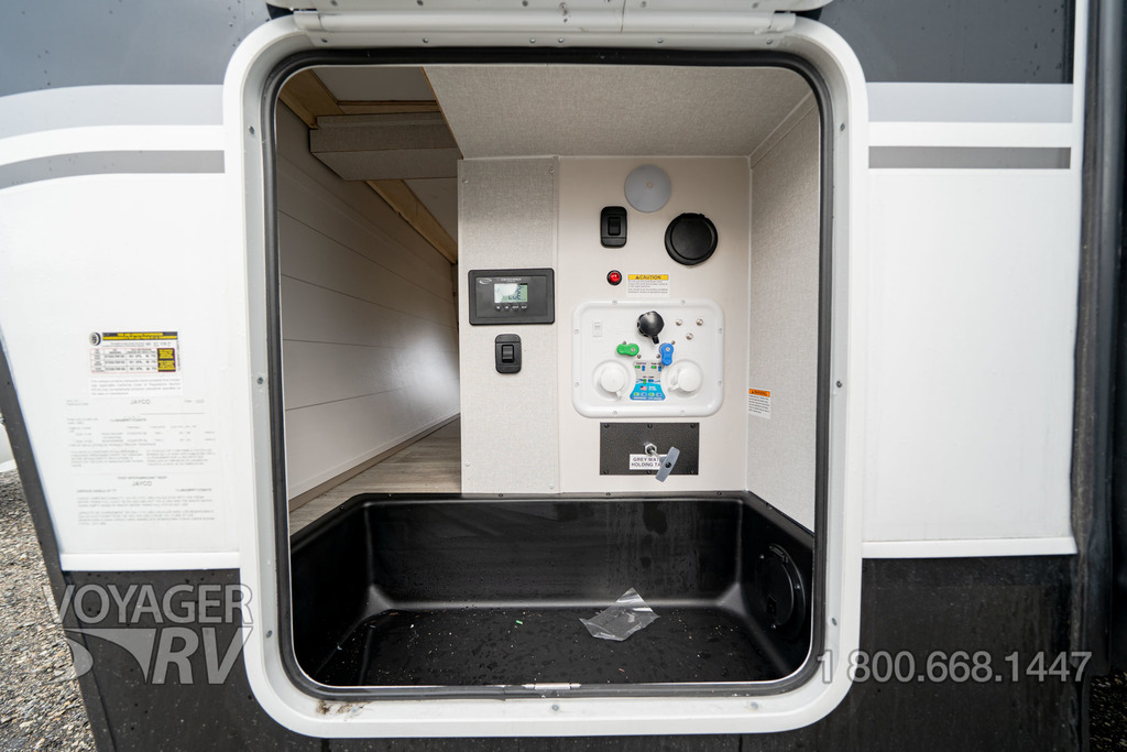 - Luxury Package: Blackout Roller Shades with Reflective Side Throughout, GE Black Glass 10 Cu.Ft. 12V Refrigerator , JayPort 2" Mount for Outside Accessories, Residential Style Glass Shower Door, Washer/Dryer Prep (Select Models), GE 30" OTR Black and Stainless Microwave with Exhaust Fan, GE Black and Stainless 21" Range with Edge to Edge Grates, Inverter Pre-Wire (Multiple Locations), Multi-Function "All In One" Black Stainless Steel Kitchen Sink, Olympic 66"x80" Residential Mattress, Magnetic Catches For All Doors & Drawers, Solid Surface Kitchen Countertop(s), JayCommand with Monitor Switch Panel, Exterior Light & Outlet at JayPort Location.