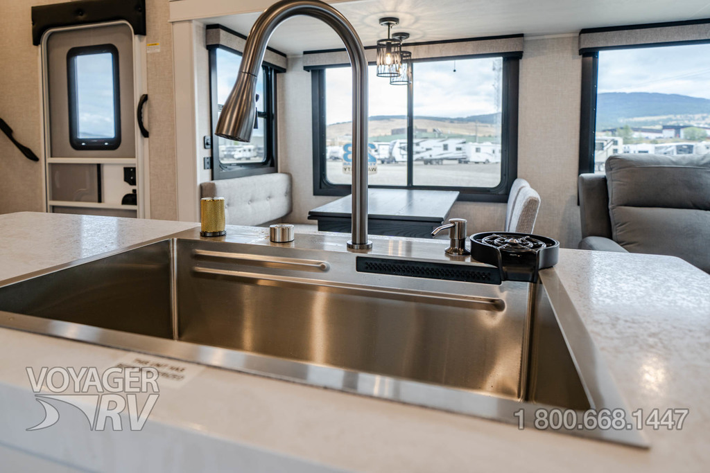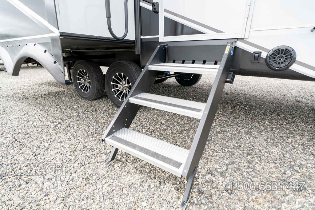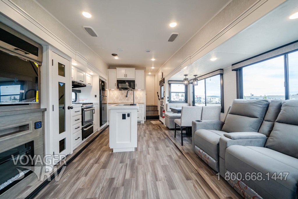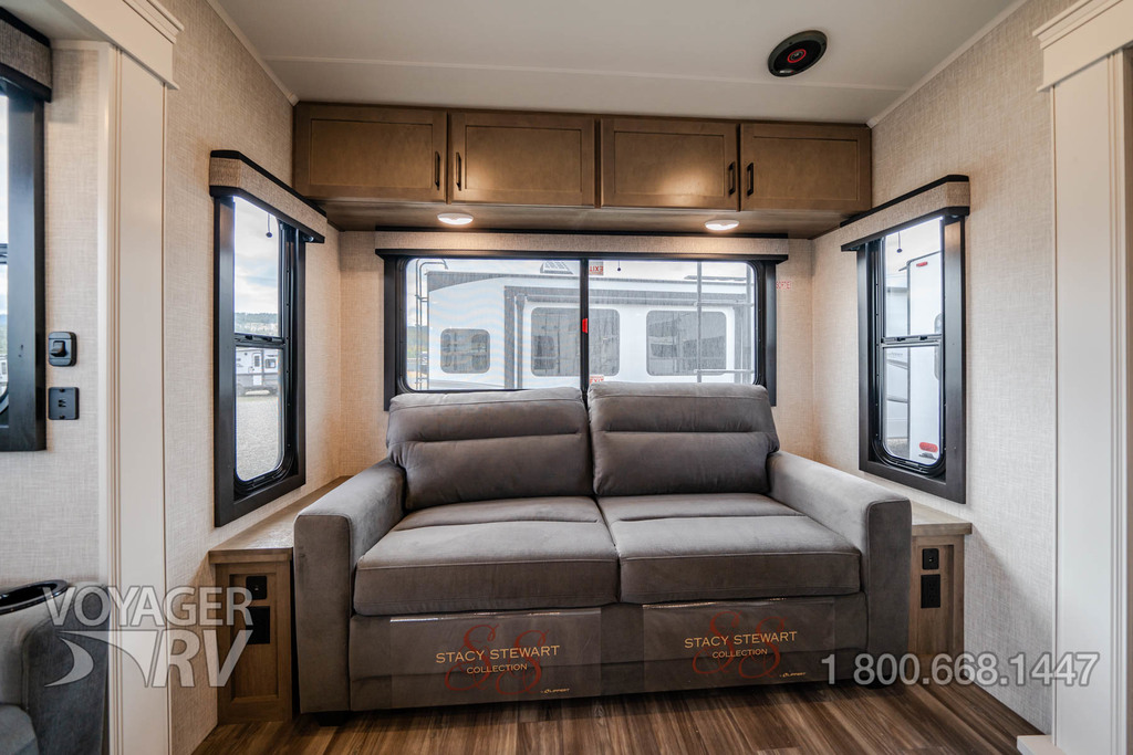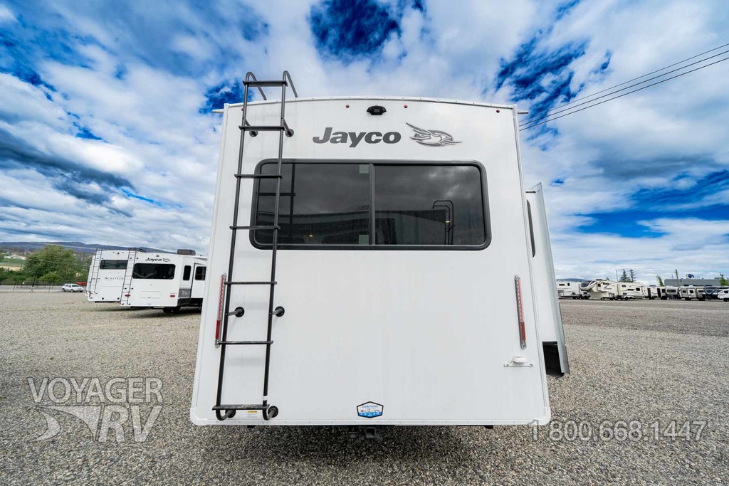 - Customer Value Package: 15K BTU "Whisper Quiet" A/C & Bedroom A/C Prep, 40" 4K Ultra LED HD Smart TV in living room, 50AMP Service w/Dual A/C Ducts, 60K On-Demand Tankless Water Heater, Custom Machined Aluminum Rims, Electric Patio Awning (Integrated Dimmable LED Lights w/JAYCOMMAND), Hidden Hinges on Cabinet Doors, Interior & Exterior Blue Sync Audio Connect w/ MB Quart Sound (TV & Phone), Keyed-A-like Lock System, MORryde Step Above Entrance Step (Main Entrance) w/Blue LED Light, Overlander I Solar Pkg, Rain Proof Bathroom Power Vent, Rear 2" Receiver (4-pin Connector on FWs Only), 5G Winegard Air 360 + Antenna w/Router Prep, Inverter Pre-Wire (Select Outlets).