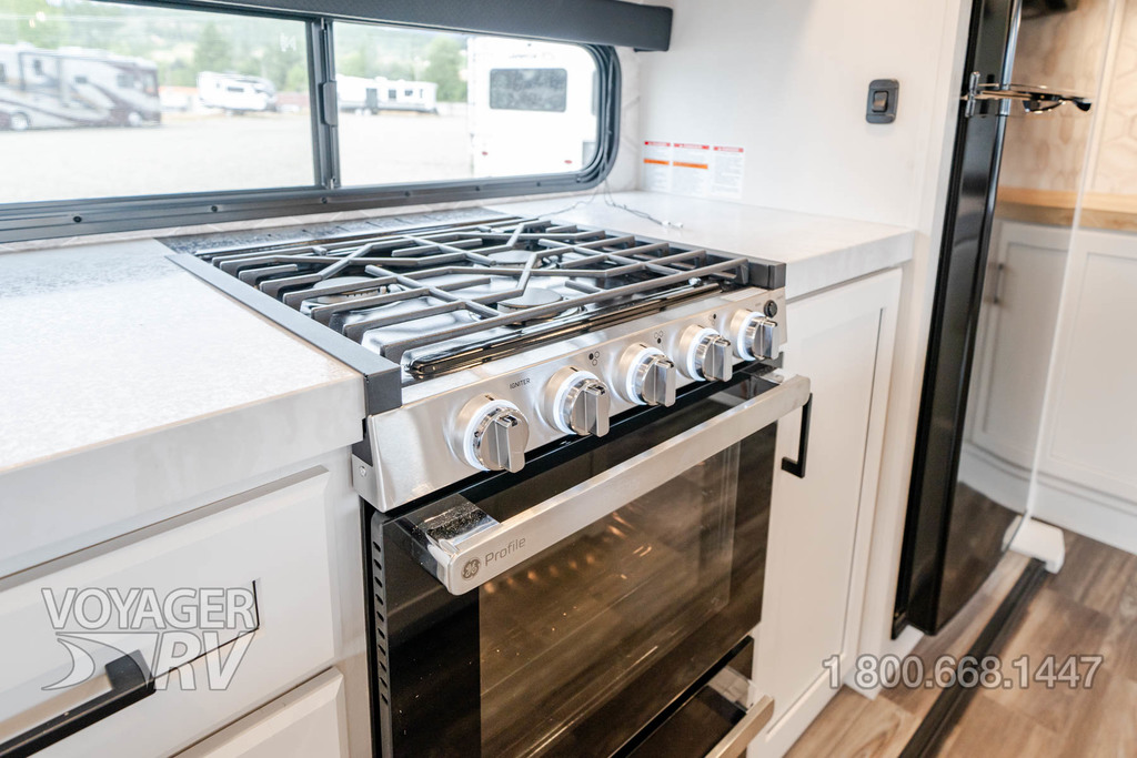 - Luxury Package: Blackout Roller Shades w/Reflective Side Throughout, Electric Auto-Leveling, GE 10 Cu.Ft. 12V refrigerator w/Black Glass Front, JayPort 2" mount for outside accessories, Residential Style Glass Shower Door, Washer/Dryer Prep (Select Models), GE 30" OTR Black & Stainless Microwave w/Exhaust Fan, GE 21" Black & Stainless Range w/Edge to Edge Grates, Multi-Function "All In One" Black Stainless Steel Kitchen Sink, Residential Olympic 66"x80" Mattress, Magnetic Catches for all Doors and Drawers, Solid Surface Kitchen Countertop(s), LED Fireplace w/5K BTU Electric Space Heater, JayCommand w/Monitor Switch Panel, Exterior Light & Outlet at JayPort Location.