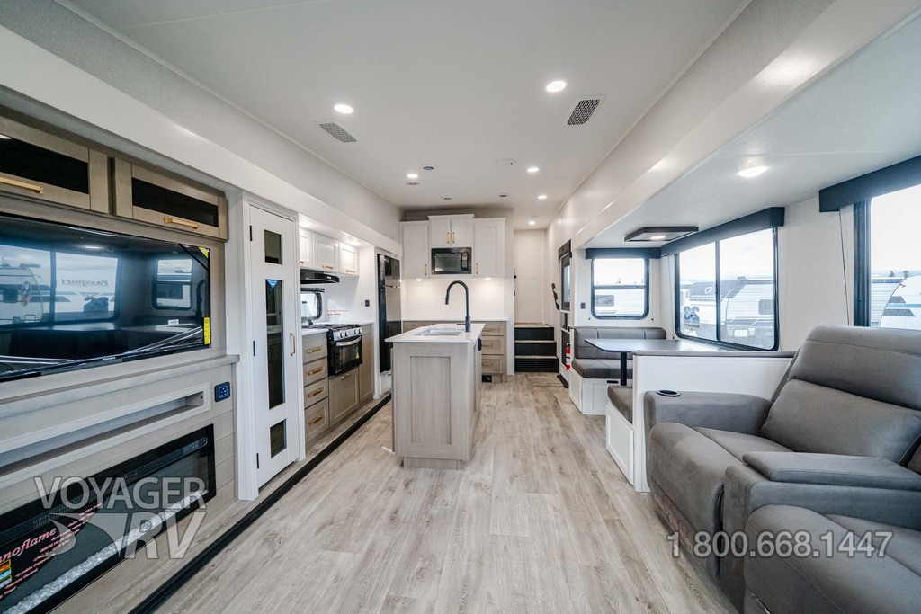 - Customer Value Package: 15K BTU "Whisper Quiet" A/C & Bedroom A/C Prep, 40" 4K Ultra LED HD Smart TV in living room, 50AMP Service w/Dual A/C Ducts, 60K On-Demand Tankless Water Heater, Custom Machined Aluminum Rims, Electric Patio Awning, Hidden Hinges on Cabinet Doors, Interior Blue Sync Audio Connect w/MB Quart Sound (TV & Phone), Keyed-Alike Lock System, MORryde Step Above Entrance Step, Rain Proof Bathroom Power Vent, Rear 2" Towing Receiver (4-Pin Connector on FW's Only), Winegard Air 360 Antenna, 8 Cu. Ft. 12V Refrigerator, Inverter Pre-Wire Throughout Interior & Exterior, Electric Rear Stabilizer Jacks, Magnetic Catches for all Doors and Drawers, Overlander I Solar Pkg.
