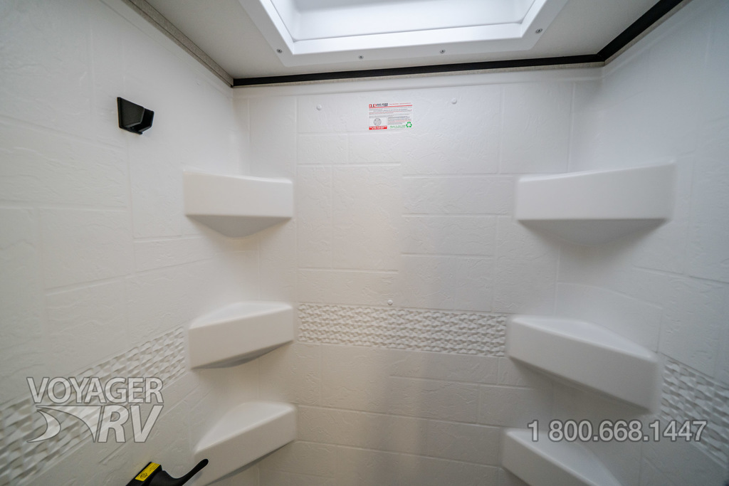 - Customer Value Package: 11 Cu Ft 12V Refrigerator, 13.5k BTU Roof A/C, Roof Mount Solar Prep, Automotive Style Alum Rims, Rear Back Up Camera Prep, Bathroom Skylight, Detachable Power Cord, Plywood Dinette Bases, Electric Vent in Bathroom, Electric Fireplace Prep, Entry Door with Window and Shade Prep, G20 Dark Tinted Privacy Windows, Hidden Cabinet Hinges, Keyed-Alike Lock System, Large Folding Entry Door Grab Handle, LED Interior and Exterior Lights, 20lb LP Bottle with Auto Regulator and Fill Gauge, Microwave Oven, Morryde Step Above Entry Steps, On Demand Tankless Water Heater, Power Awning with LED Lights, Range hood, Rear 2" Receiver Prep, Stabilizer Jacks, Shower Surround, Under Mount Spare Tire, Vacuum Bonded Sidewalls with Interior and Exterior Azdel Composite Panels, Pleated Window Shades.
