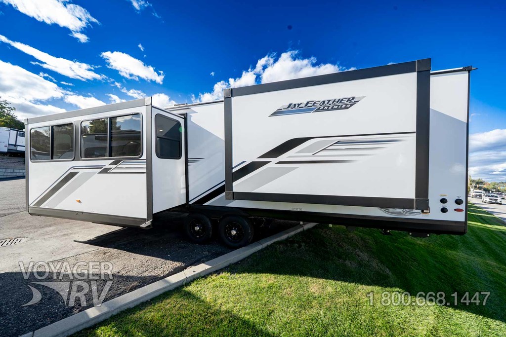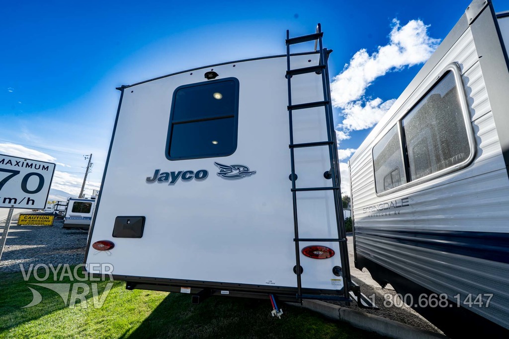 - JaySport Package: 11 Cu. Ft. 12V Refrigerator, App Monitored TPMS (compatible w/ most Apple Car Play & Android Auto), Climate Shield (Zero to 100 Degree Tested Weather Insulation Package), Front Slam-Latch Baggage Doors, Invision Kitchen Appliance Package, Solid Fold-Down Step w/ Aluminum Tread On Main Entry Door Step, LED Smart TV, Modern Graphics Package, Porcelain Foot-Flush Toilet, Overlander 1 Solar Package: (1) 200 Watt Solar Panel and 30-Amp Digital Controller, Stainless Steel Double Basin Kitchen Sink, Keyed Alike Doors, Rear Exterior Ladder, Dark Tinted Privacy Windows.