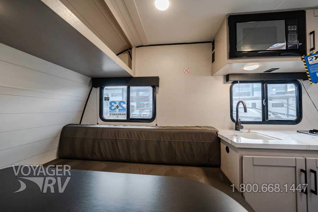 • Customer Value Package: 5 Cu Ft 12V Refrigerator, 13,500 BTU Roof A/C, Roof Mount Solar Prep, Exterior Porch Light, Vacuum Bonded Sidewalls W/Interior & Exterior Azdel, Plywood Dinette Bases, 19k BTU Furnace, 2 Burner Stove Top, Electric Vent in Bathroom & Kitchen Vent, Rear Back-Up Camera Prep, Detachable Power Cord, Inverter Pre-Wire Outlets, Entry Door w/Window and Shade Prep, G20 Dark Tinted Privacy Windows, LED Interior and Exterior Lights, Microwave Oven, Stabilizer Jacks, Pleated Window Shades, Power Awning, Front Tongue Jack, Rear Bumper, 20# LP Gas Bottle (w/ Auto-Regulator & Fill Gauge), On Demand Tankless Water Heater, Shower Surround, Hidden Cabinet Hinges, Keyed Alike Doors.