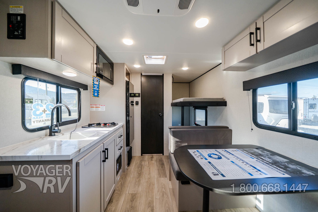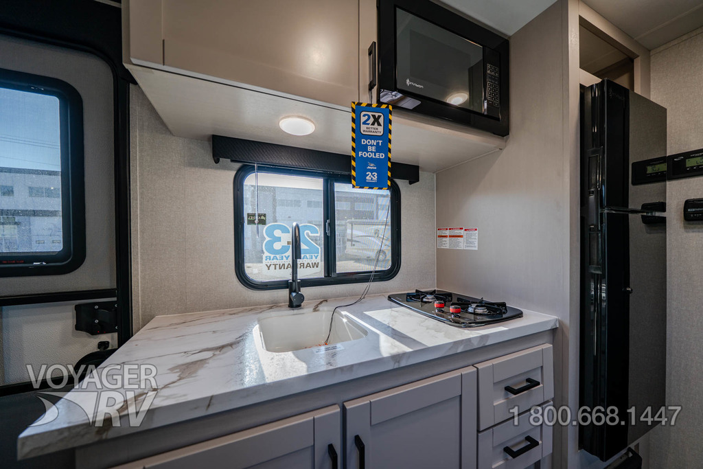 - Customer Value Package: 5 Cu Ft 12V Refrigerator, 13,500 BTU Roof A/C, Roof Mount Solar Prep, Exterior Porch Light, Vacuum Bonded Sidewalls W/Interior & Exterior Azdel, Plywood Dinette Bases, 19k BTU Furnace, 2 Burner Stove Top, Electric Vent in Bathroom & Kitchen Vent, Rear Back-Up Camera Prep, Detachable Power Cord, Inverter Pre-Wire Outlets, Entry Door w/Window and Shade Prep, G20 Dark Tinted Privacy Windows, LED Interior and Exterior Lights, Microwave Oven, Stabilizer Jacks, Pleated Window Shades, Power Awning, Front Tongue Jack, Rear Bumper, 20# LP Gas Bottle (w/ Auto-Regulator & Fill Gauge), On Demand Tankless Water Heater, Shower Surround, Hidden Cabinet Hinges, Keyed Alike Doors.