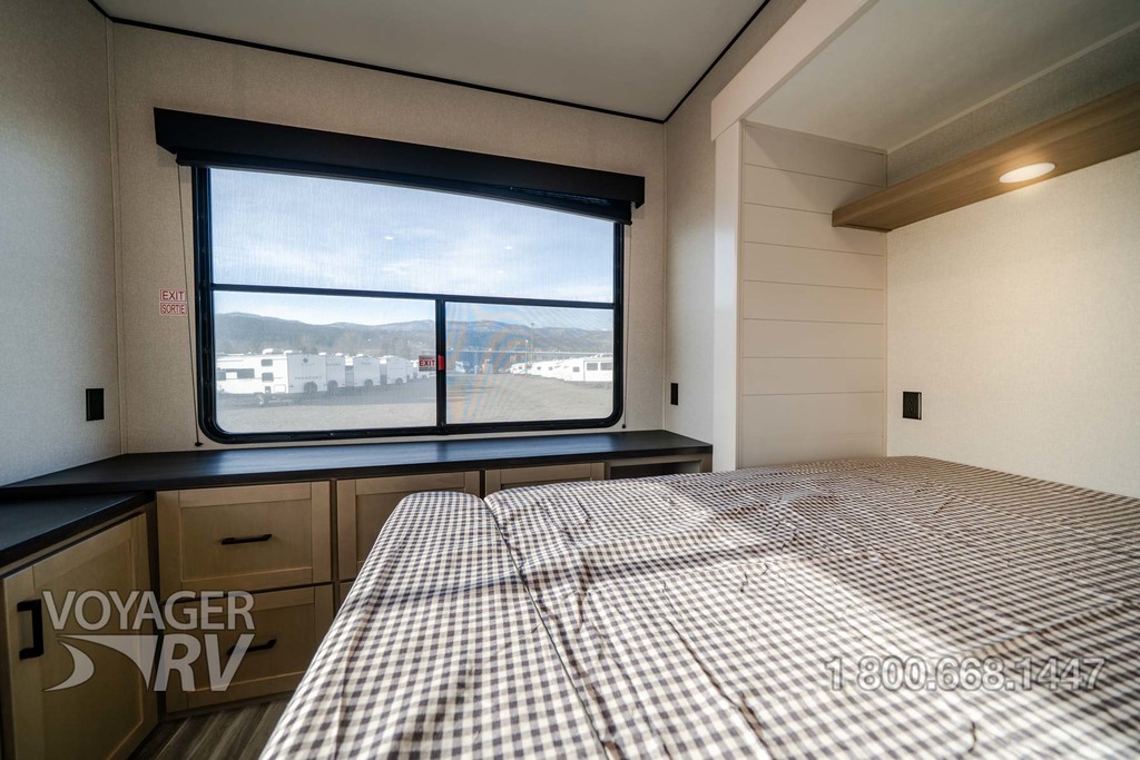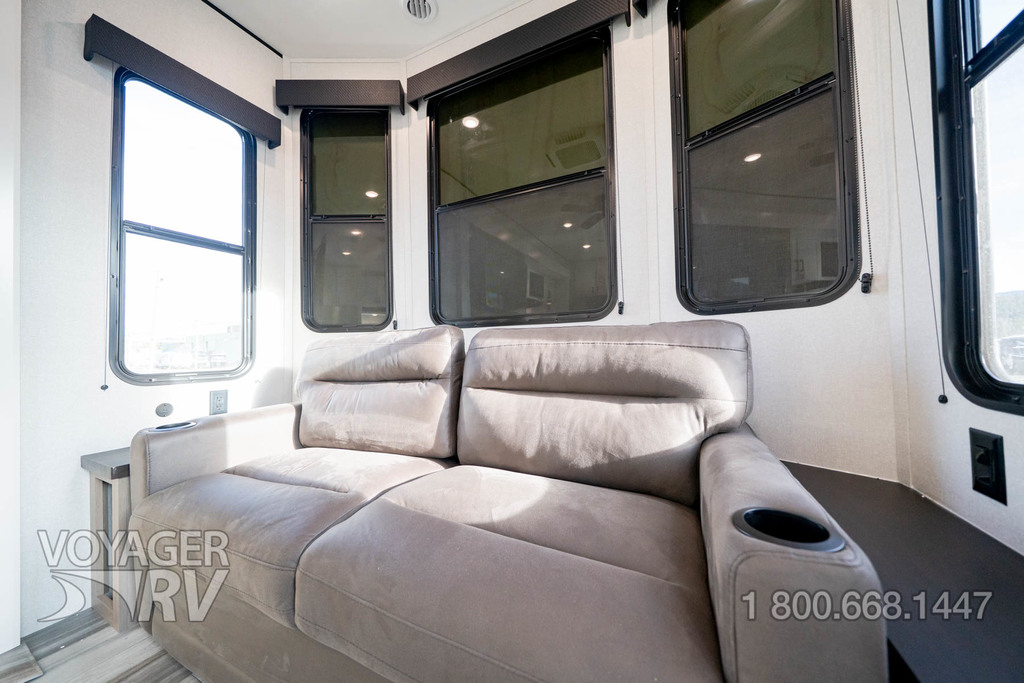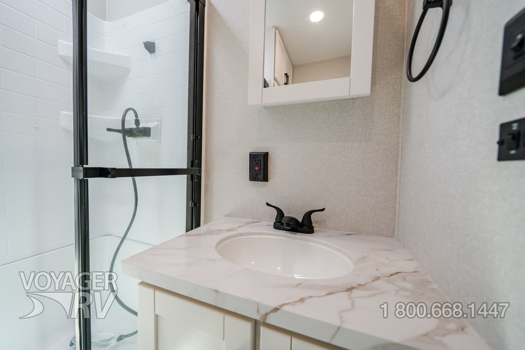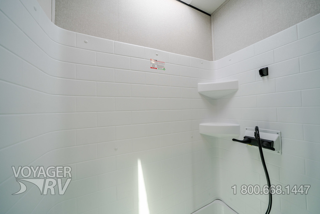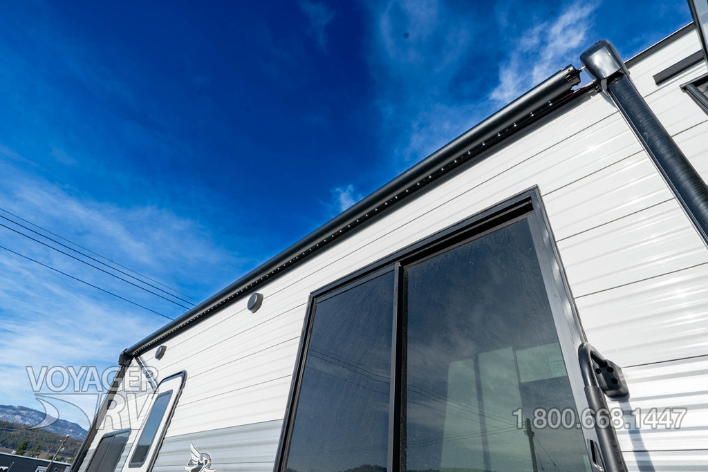 - Customer Value Package: G20 dark-tinted privacy windows, Marine-grade exterior speakers, One-piece front fiberglass wall, Oversized side windows, Power awning with LED light, Detachable power cord, (2) 30 lb. propane bottles with cover, 15K BTU A/C, 15K BTU second A/C, Ceiling fan, LED interior and exterior lights, Roller shades in living area, AM/FM/Bluetooth stereo, Bathroom skylight, Power vent in bathroom, Sink cover/cutting board, Shower/tub surround, Thermal Package: insulated and enclosed underbelly.