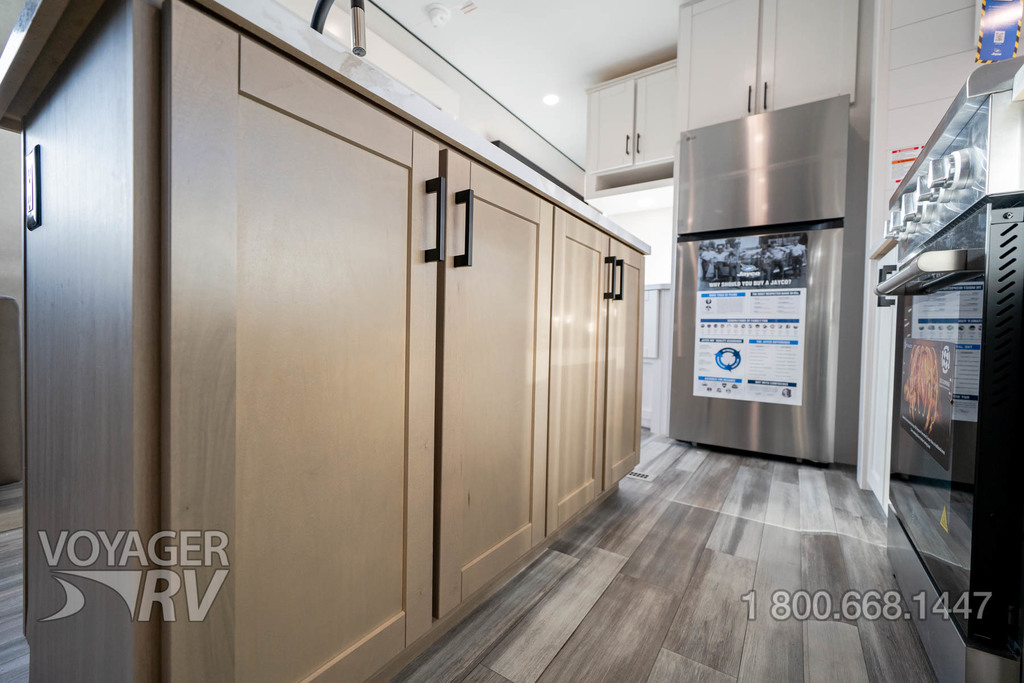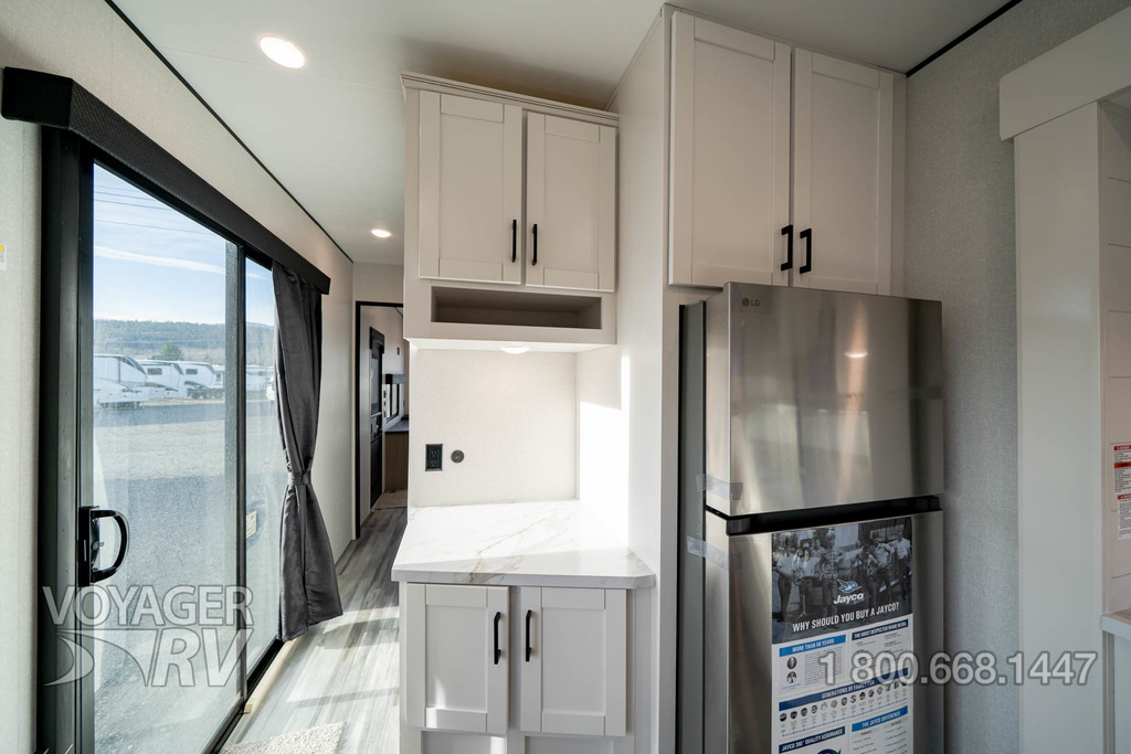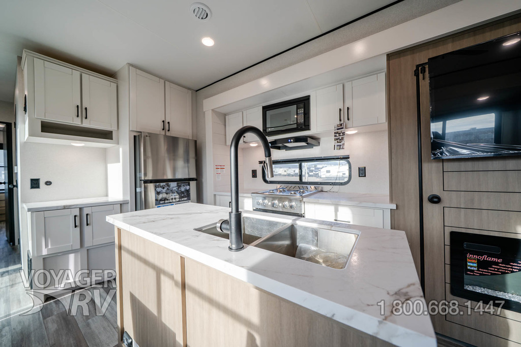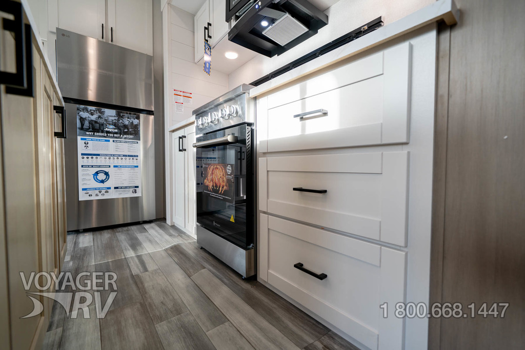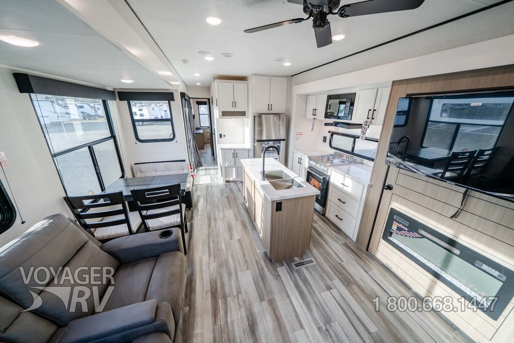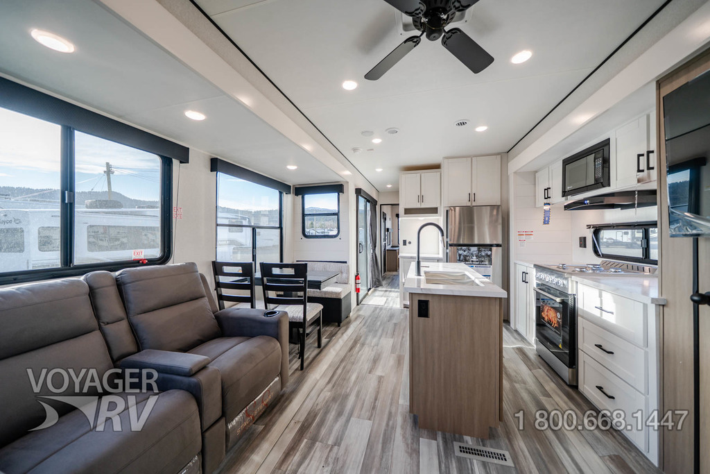 - Customer Value Package: G20 dark-tinted privacy windows, Marine-grade exterior speakers, One-piece front fiberglass wall, Oversized side windows, Power awning with LED light, Detachable power cord, (2) 30 lb. propane bottles with cover, 15K BTU A/C, 15K BTU second A/C, Ceiling fan, LED interior and exterior lights, Roller shades in living area, AM/FM/Bluetooth stereo, Bathroom skylight, Power vent in bathroom, Sink cover/cutting board, Shower/tub surround, Thermal Package: insulated and enclosed underbelly.