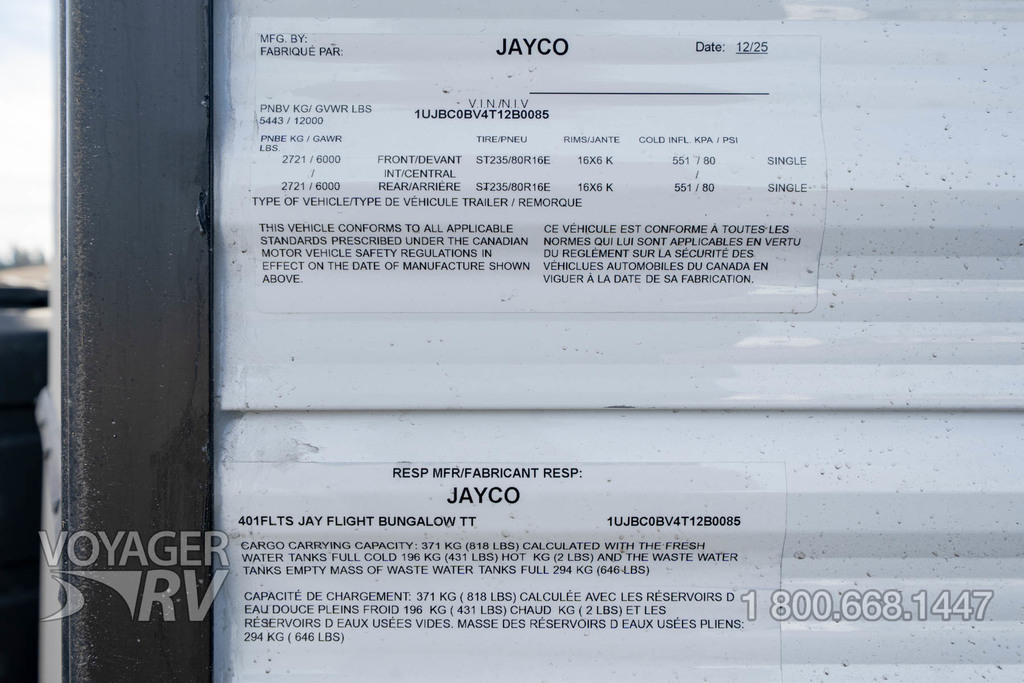 - Brand New 12V Deep Cycle RV Battery Installed (New & Used Towables)