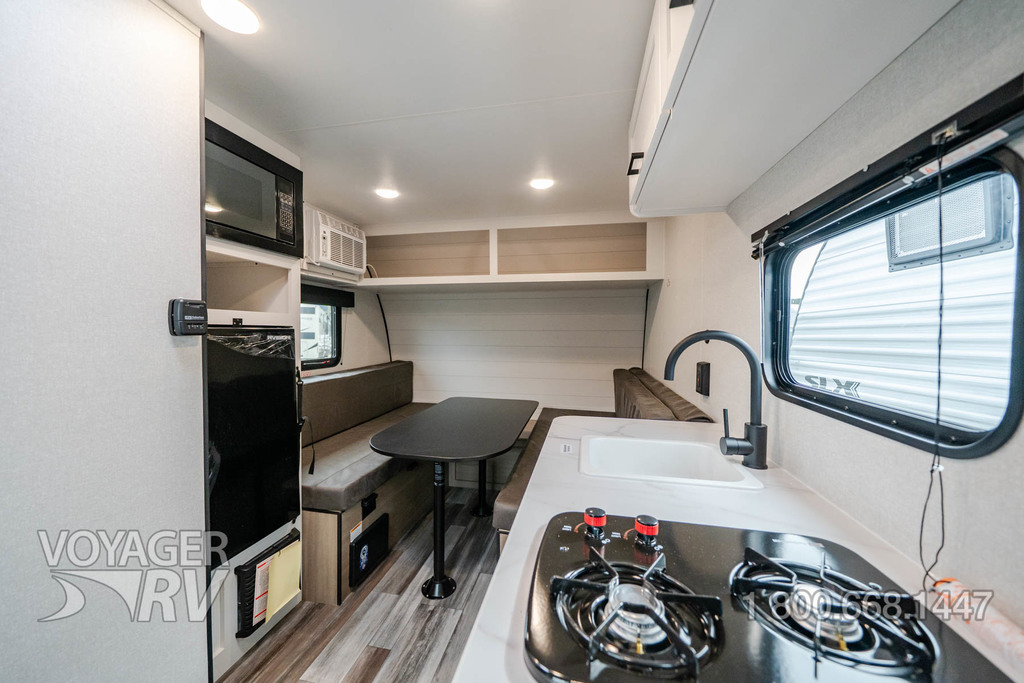 - Customer Value Package SPORT EDITION: 12V Refrigerator, 19k BTU Furnace, 2 Burner Stove Top, Bathroom Vent, Detachable Power Cord, Entry Door w/Window and Shade Prep, G20 Dark Tinted Privacy Windows, LED Interior and Exterior Lights, Microwave Oven, Stabilizer Jacks, Window Shades, Power Awning, Front Tongue Jack, Rear Bumper, 20# LP bottle, On-demand Tankless Water Heater.