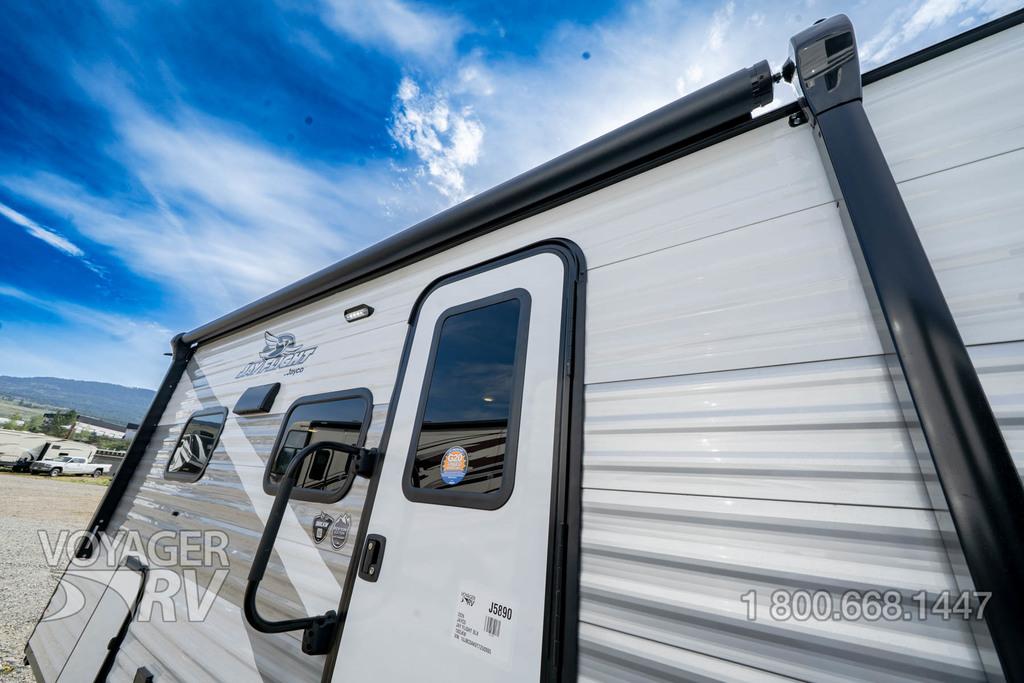 • Customer Value Package: 8 Cu Ft 12V Refrigerator, Back Up Camera Prep, Bathroom Skylight, Bathroom Vent, Detachable Power Cord, Entry Door Window & Shade Prep, Fitted Bed Sheet, G20 Dark Tinted Windows, Keyed-Alike Entry & Baggage Doors, Large Folding Entry Door Grab Handle, LED Interior & Exterior Lights, Microwave Oven, On Demand Tankless Water Heater, Power Awning with LED Lights, Range Hood, Step Above Entry Steps, Spare Tire with Cover, Stabilizer Jacks, Tub/Shower Surround, Window Shades.
