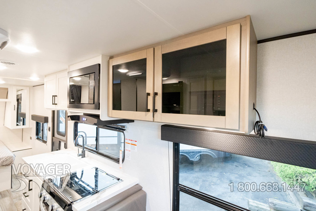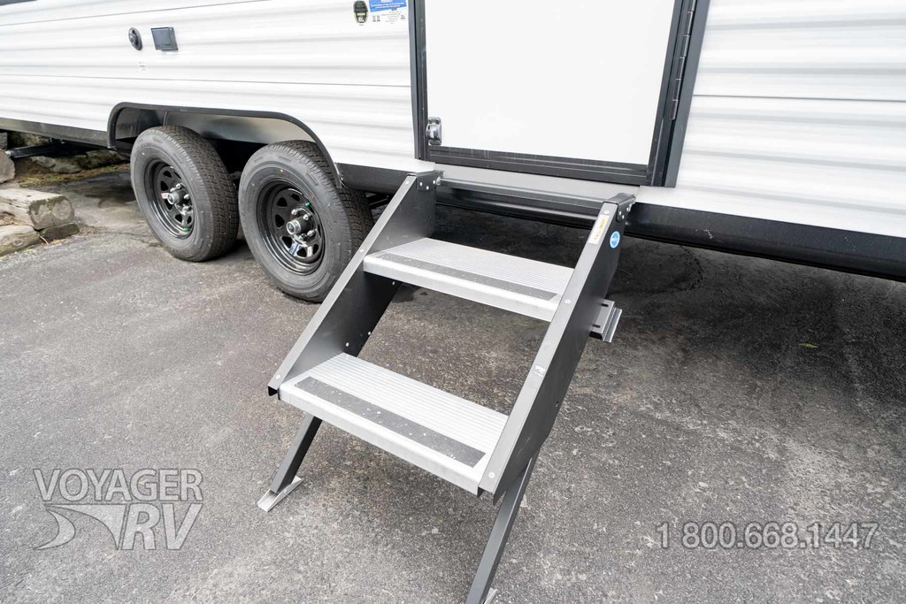 - Customer Value Package: 8 Cu Ft 12V Refrigerator, Backup Camera Prep, Bathroom Skylight, Bathroom Vent, Detachable Power Cord, Entry Door with Window and Shade Prep, Fitted Bed Sheet, G20 Dark Tinted Privacy Windows, Keyed-Alike Entry and Baggage Doors, Large Folding Entry Door Grab Handle, LED Interior and Exterior Lights, Marine Grade Exterior Stereo Speakers, Microwave Oven, On Demand Tankless Water Heater, Power Awning with LED Lights, Range Hood, Solid Step ® Entry Steps, Spare Tire with Cover, Stabilizer Jacks, Tub/Shower Surround, Window Shades.
