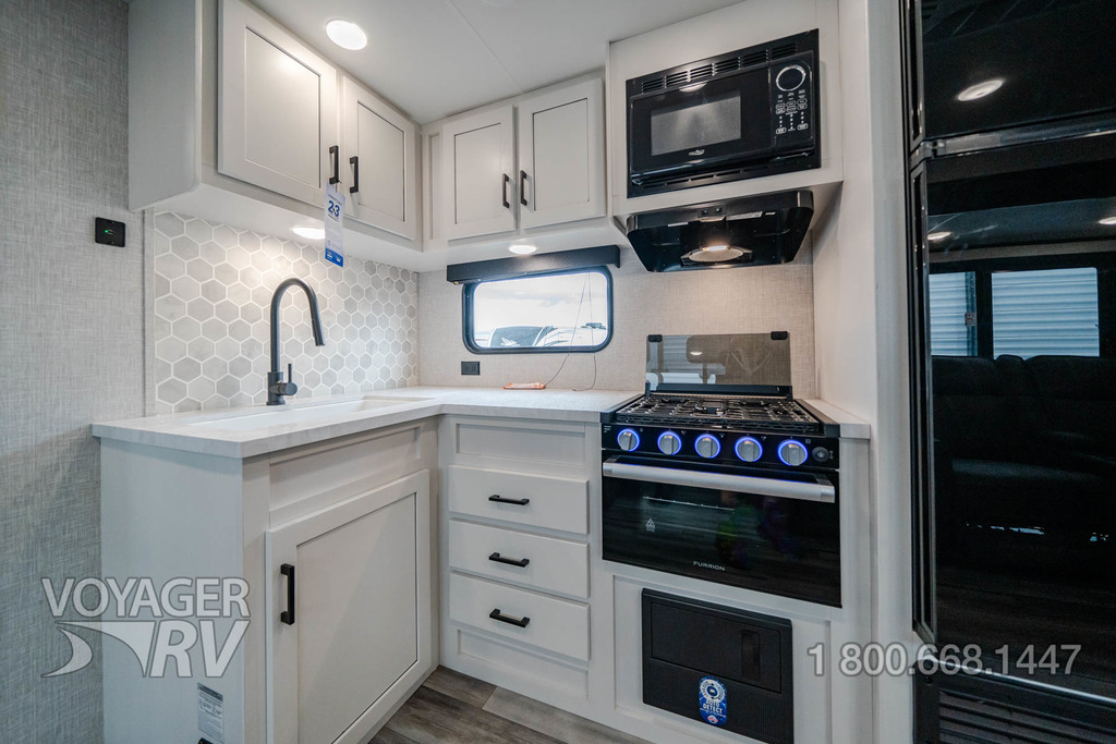 - Customer Value Package: 8 Cu Ft 12V Refrigerator, Backup Camera Prep, Bathroom Skylight, Bathroom Vent, Detachable Power Cord, Entry Door with Window and Shade Prep, Fitted Bed Sheet, G20 Dark Tinted Privacy Windows, Keyed-Alike Entry and Baggage Doors, Large Folding Entry Door Grab Handle, LED Interior and Exterior Lights, Marine Grade Exterior Stereo Speakers, Microwave Oven, On Demand Tankless Water Heater, Power Awning with LED Lights, Range Hood, Solid Step Entry Steps, Spare Tire with Cover, Stabilizer Jacks, Tub/Shower Surround, Window Shades.