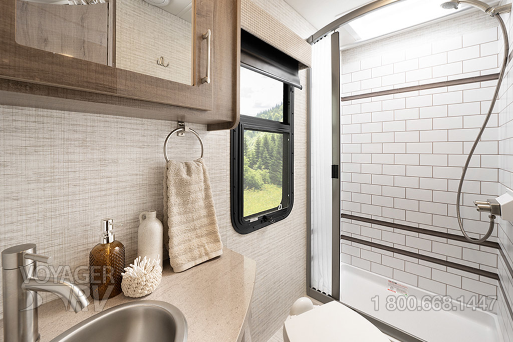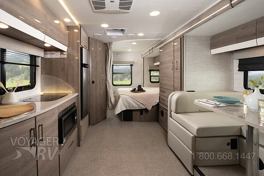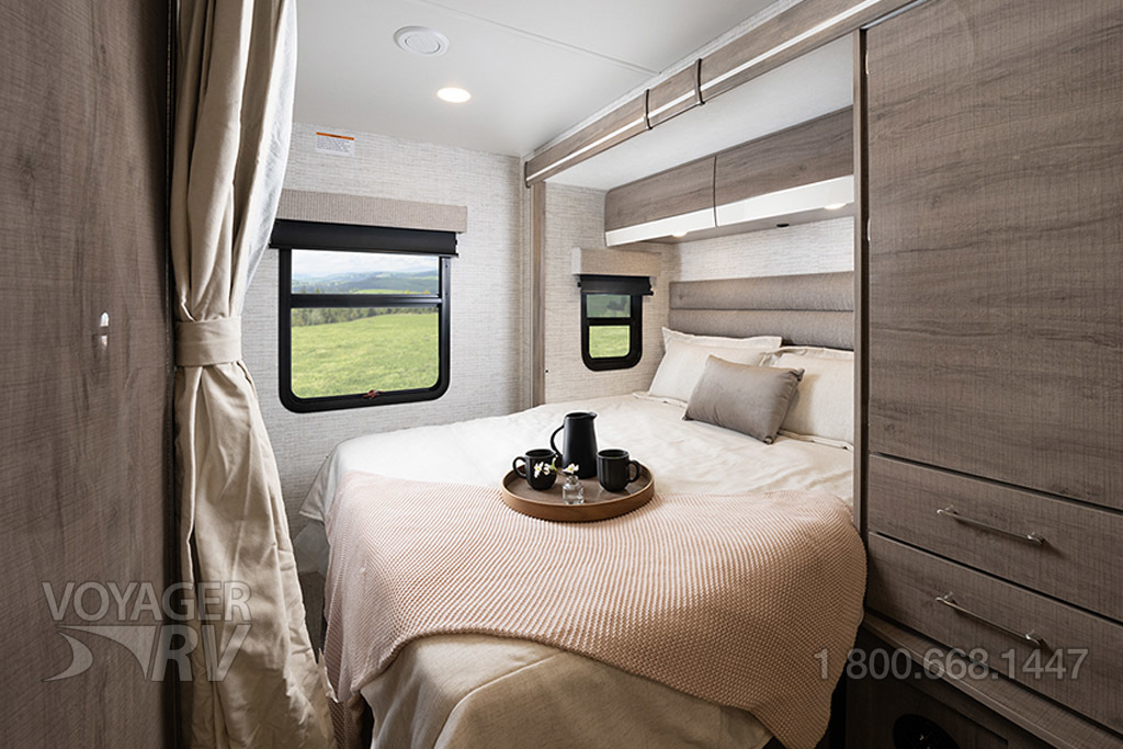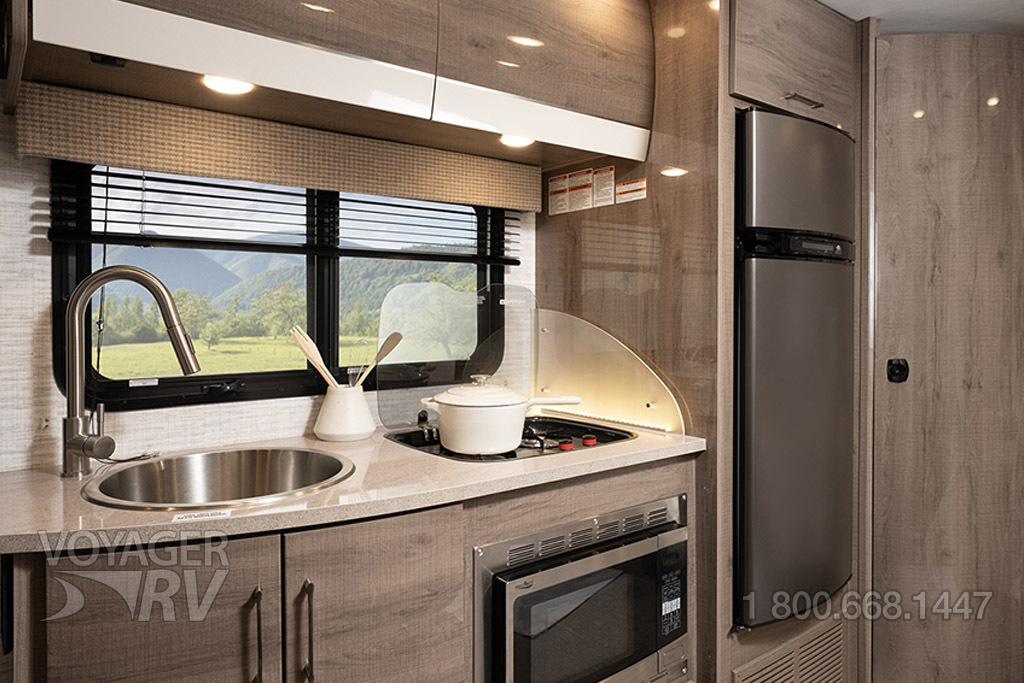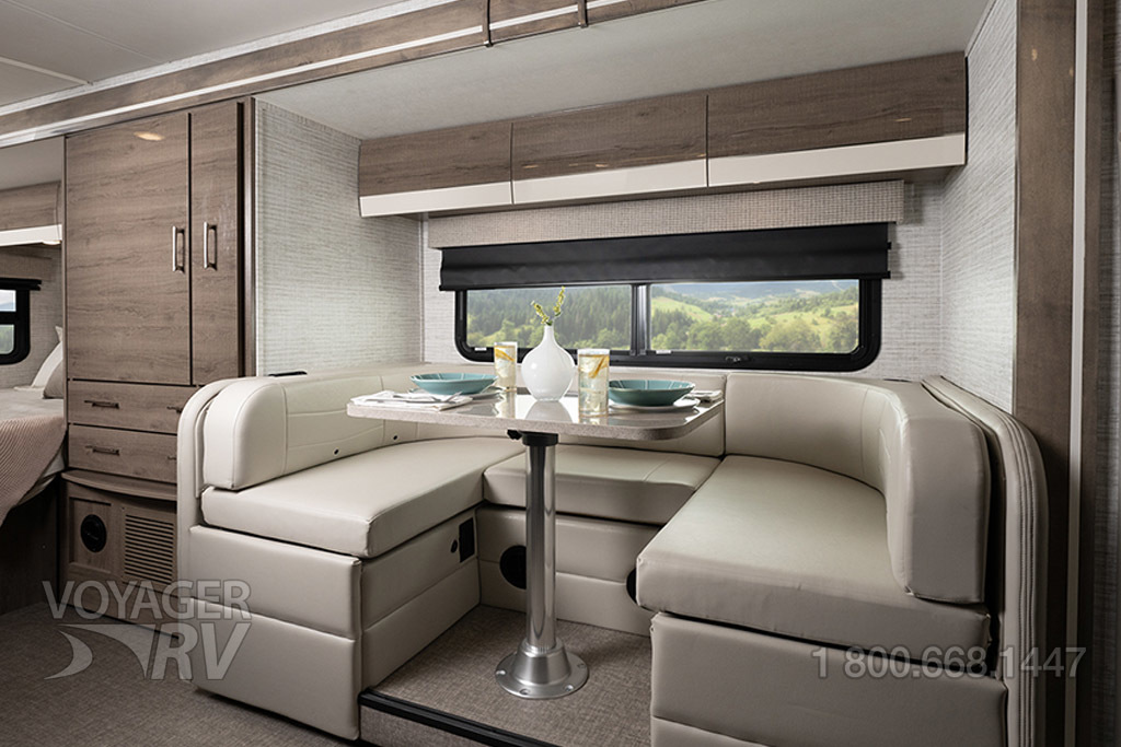 - Customer Value Package: One-piece, seamless, fiberglass front cap, Automotive-bonded, panoramic window in front cap with power shade, Frameless windows, 10.25-inch integrated Mercedes-Benz MBUX infotainment center with Apple CarPlay and Android Auto, Lippert 4000 series frameless windows, Electric stabilizer jacks, Girard armless patio awning with LED light strip, 1,000W inverter, Heated holding tanks (12V pads), Truma Combi D Comfort Plus diesel water heater and furnace, Backup and side-view cameras, Power, swivel, heated leatherette driver and passenger seats, Keyless cab entry.