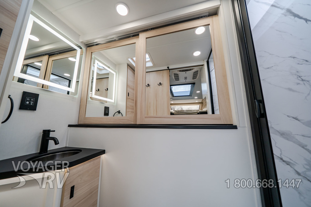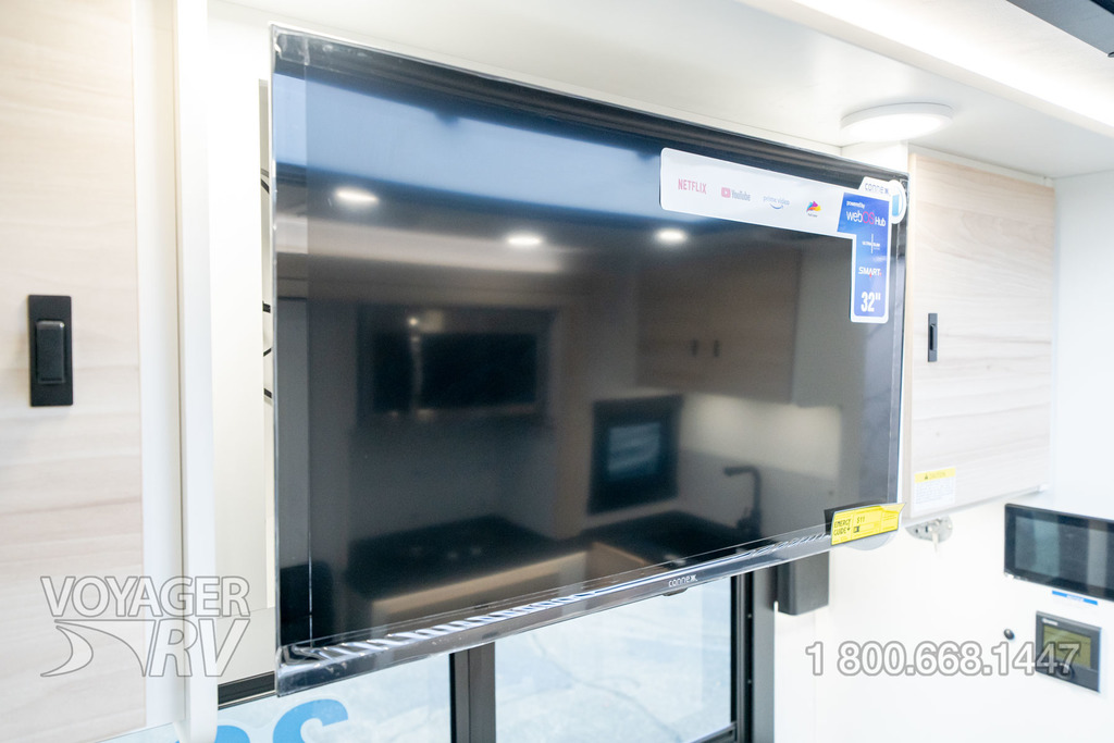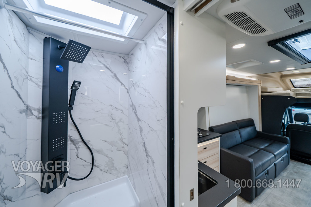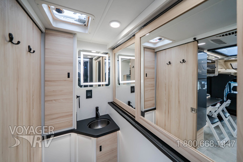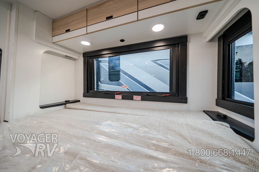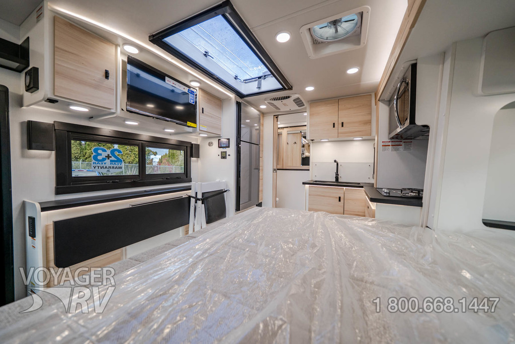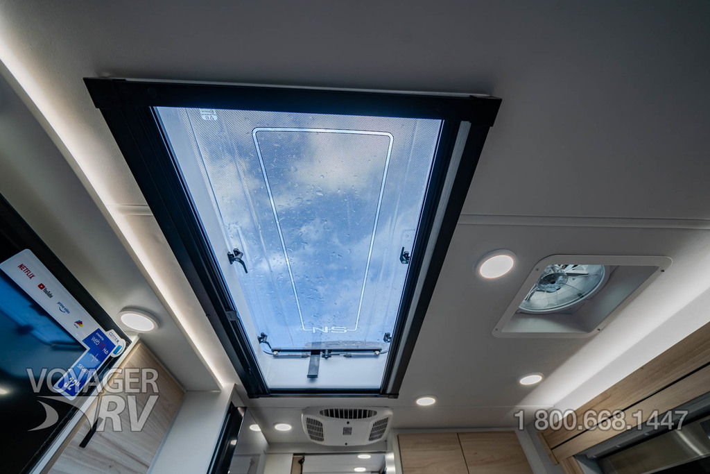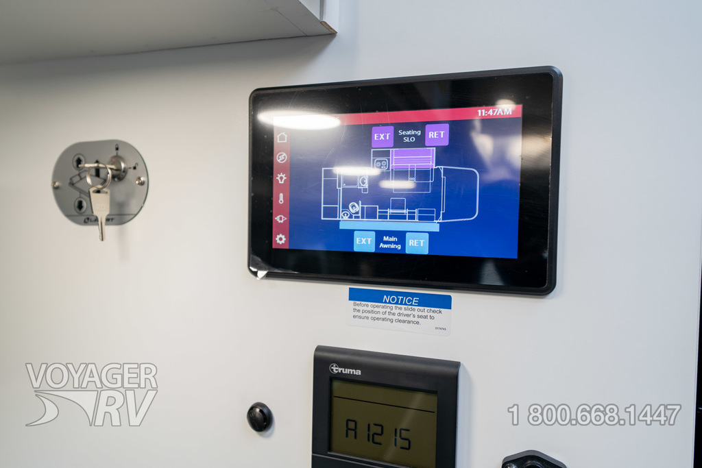 - Customer Value Package: One-piece, seamless, fiberglass front cap, Automotive-bonded, panoramic window in front cap with power shade, Frameless windows, 10.25-inch integrated Mercedes-Benz MBUX infotainment center with Apple CarPlay and Android Auto, Lippert 4000 series frameless windows, Electric stabilizer jacks, Girard armless patio awning with LED light strip, 1,000W inverter, Heated holding tanks (12V pads), Truma Combi D Comfort Plus diesel water heater and furnace, Backup and side-view cameras, Power, swivel, heated leatherette driver and passenger seats, Keyless cab entry.